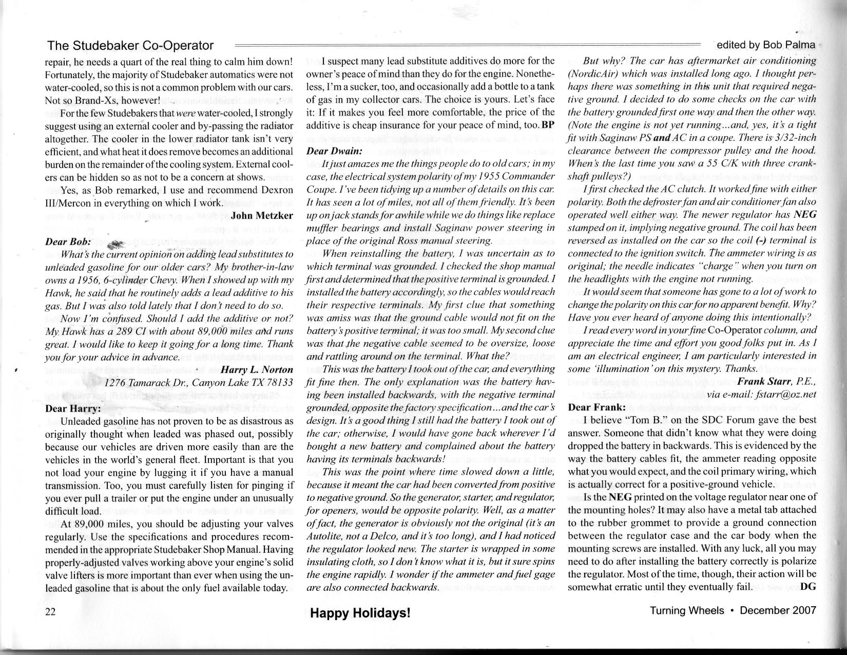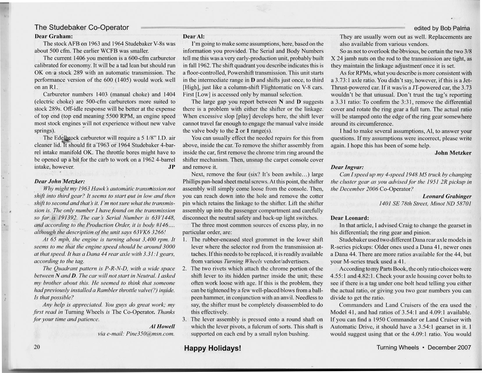 Bob's Studebaker Resource Website Cooperator Turning Wheels, December 2007