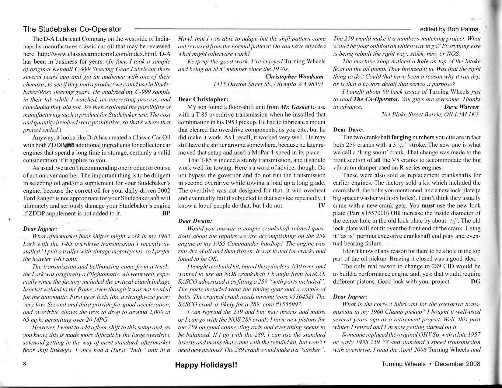 Bob's Studebaker Resource Website Cooperator Turning Wheels, December 2008