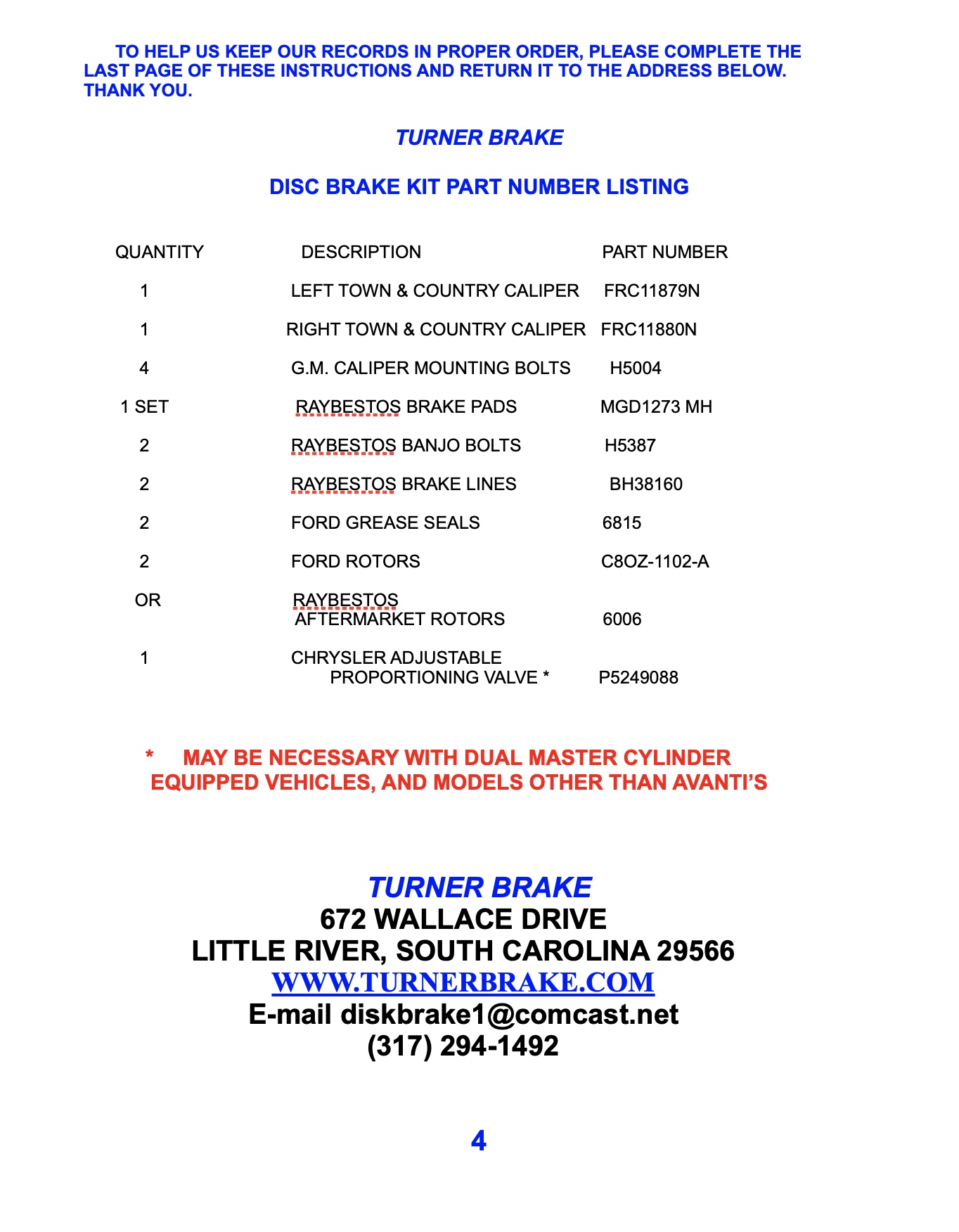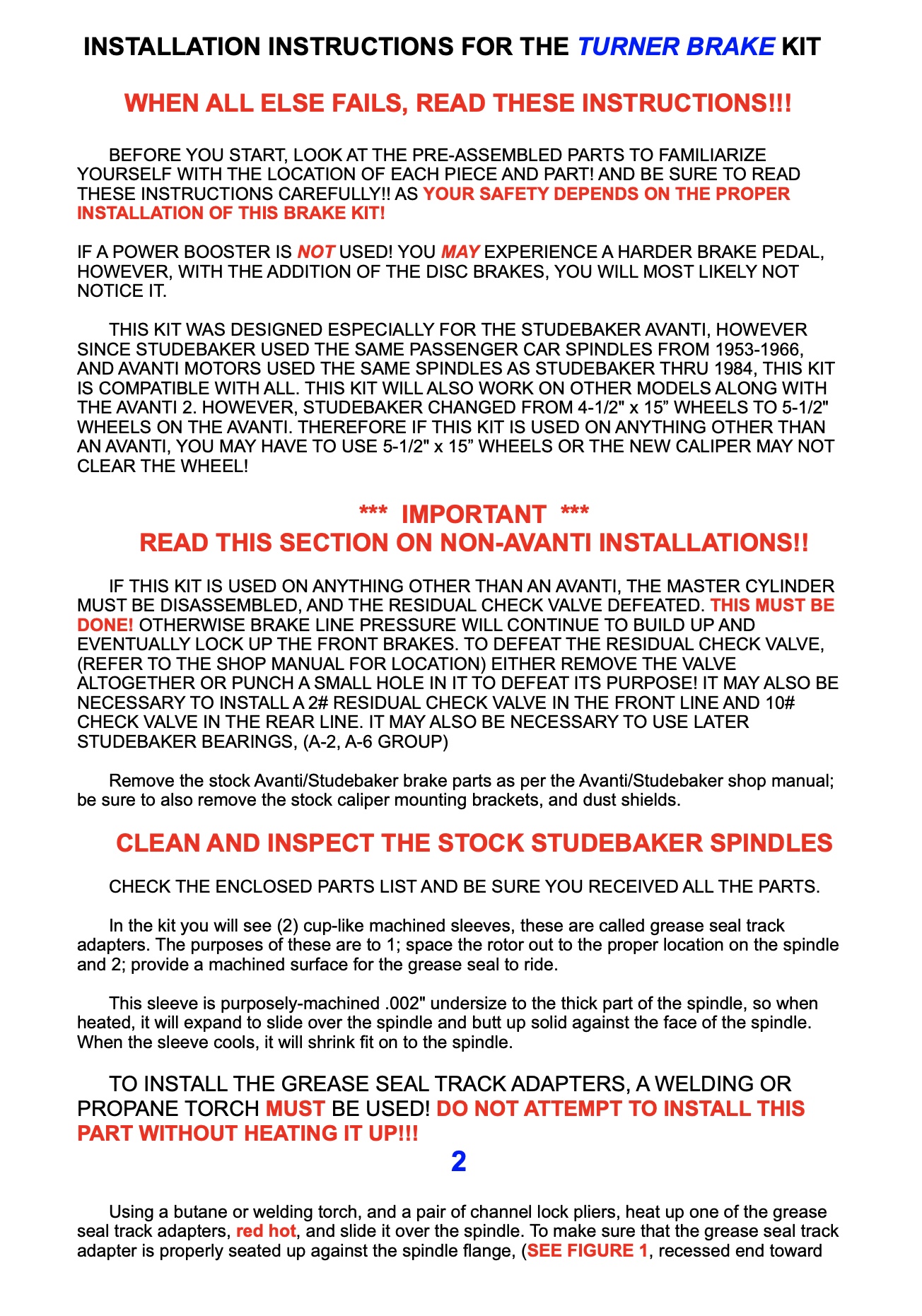 Turner Disk Brake Install Instructions - Oct 2025
