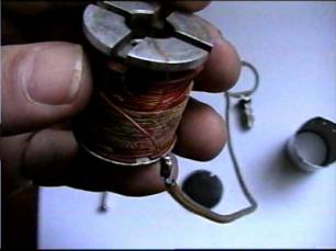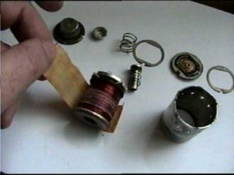 The coil for the solenoid is covered by a varnished woven cloth. Notice the burn mark on mine