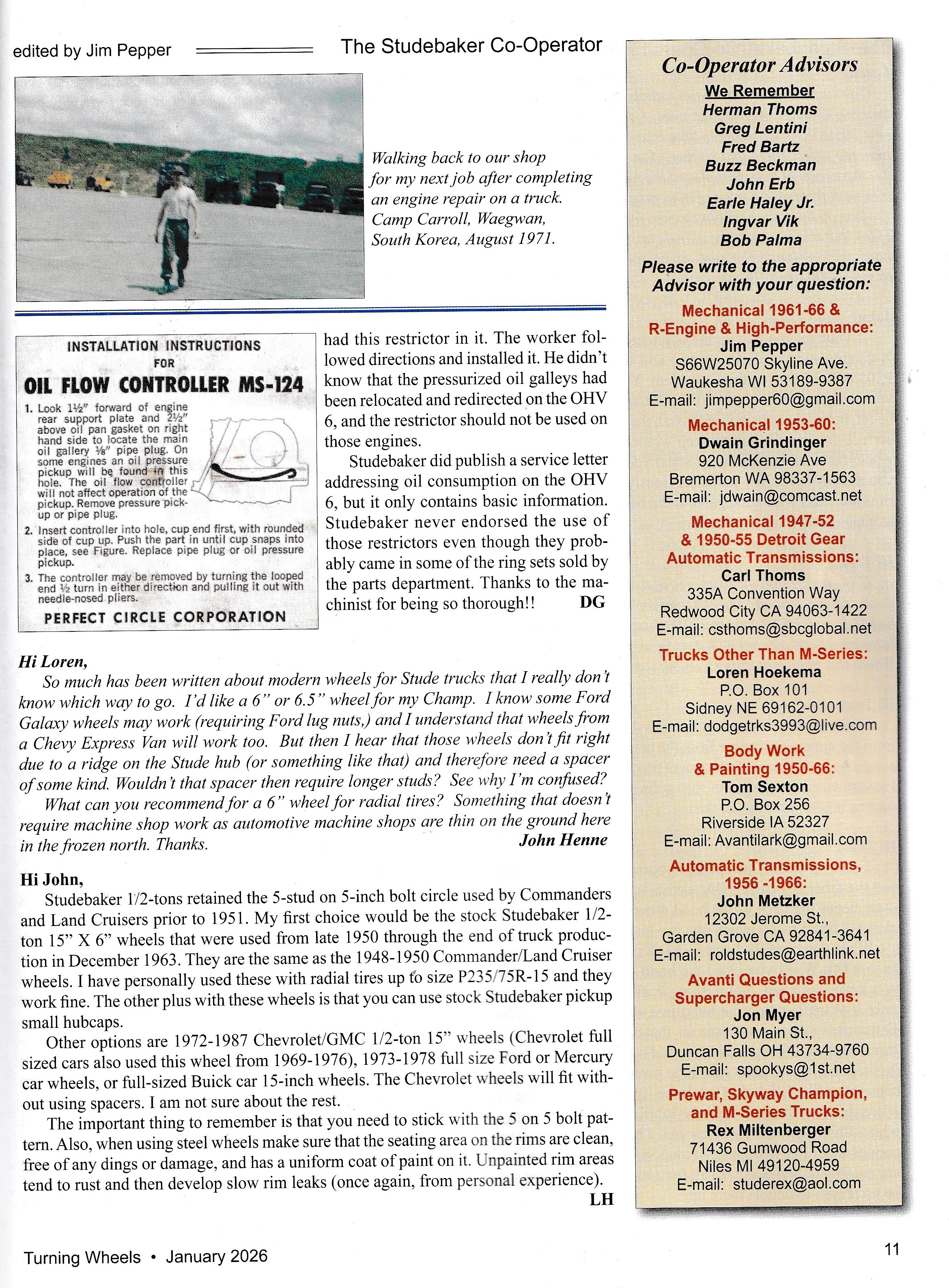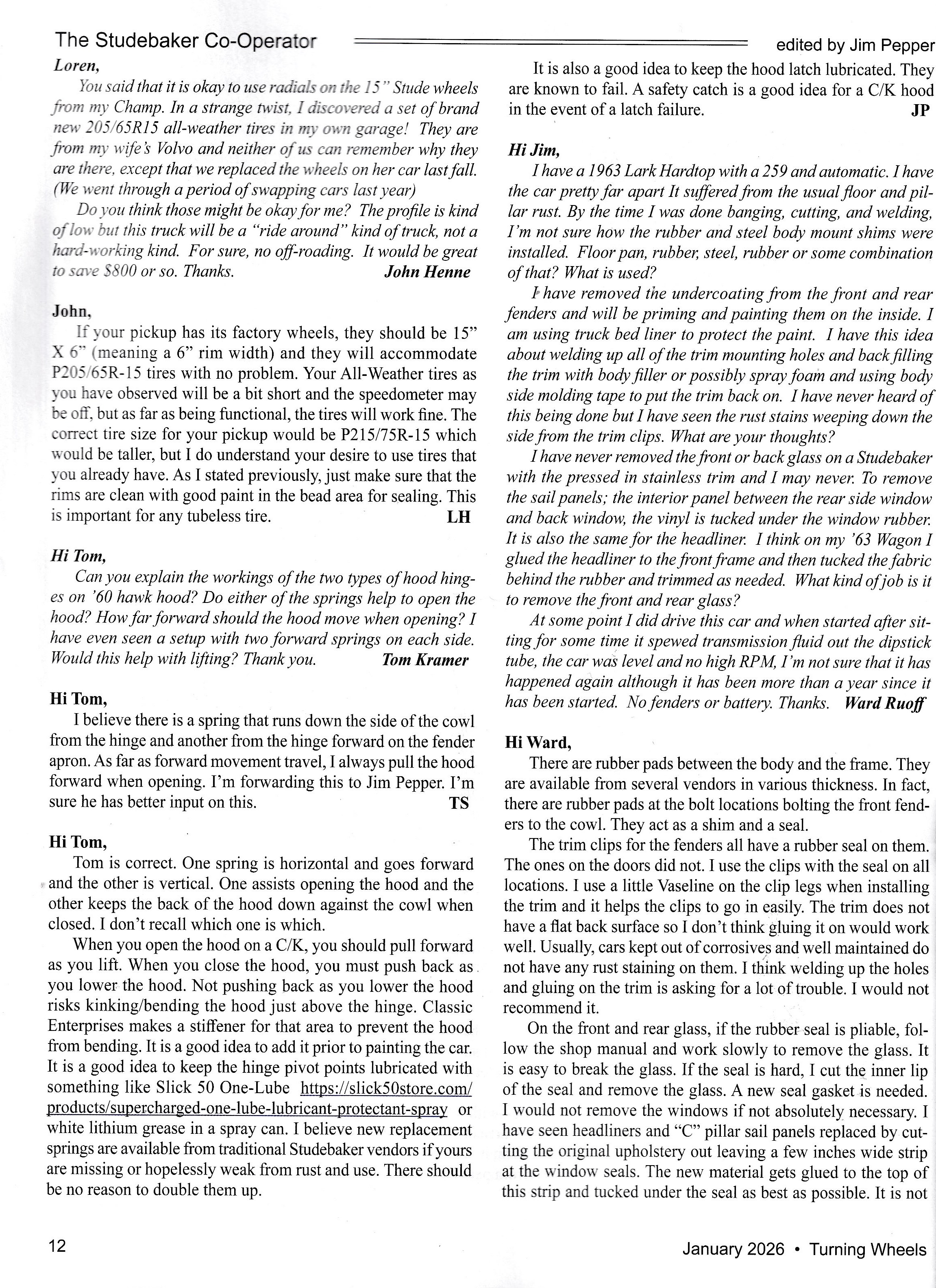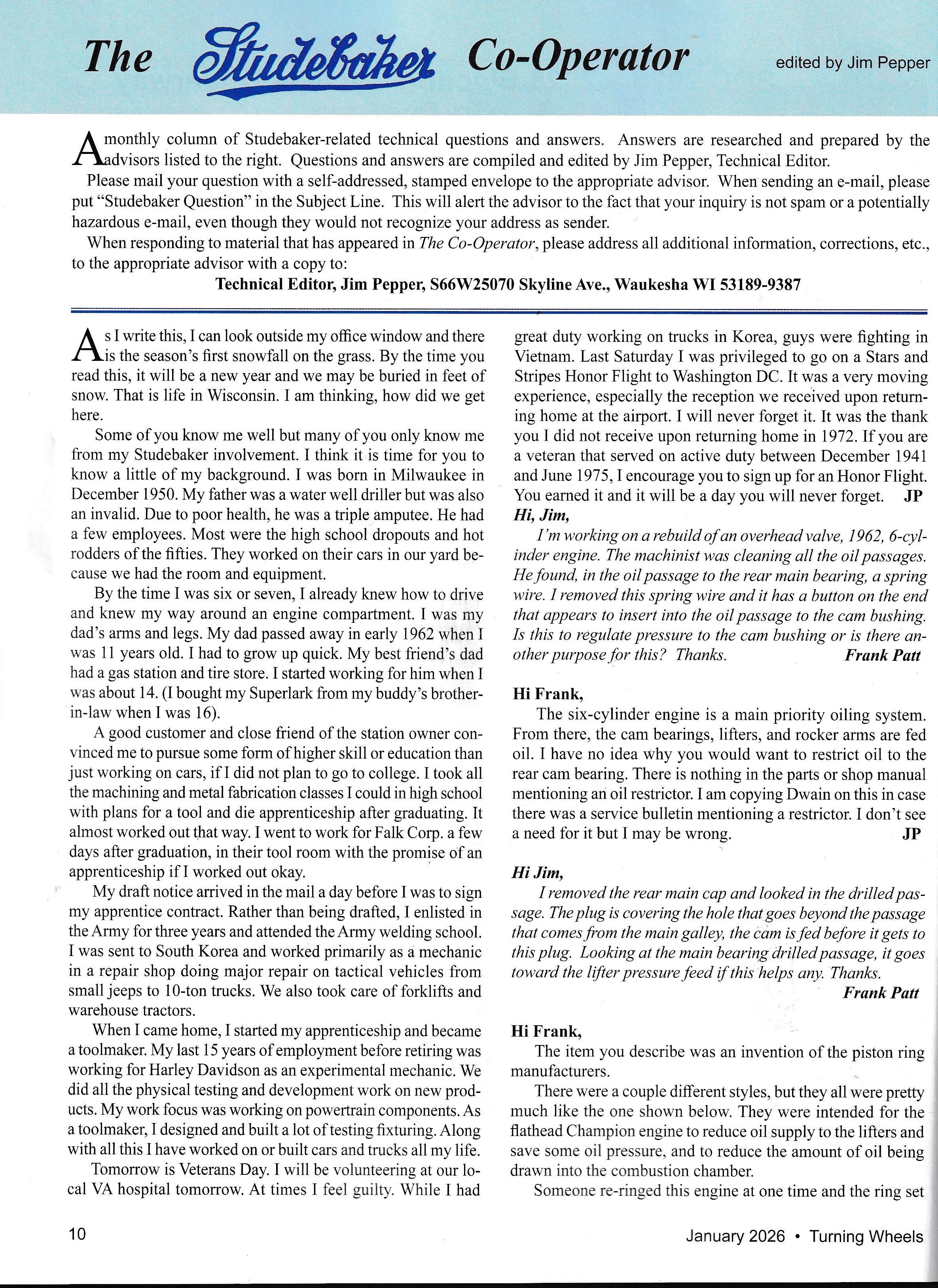 Bob's Studebaker Resource Website The Cooperator Turning Wheels, Jan 2026