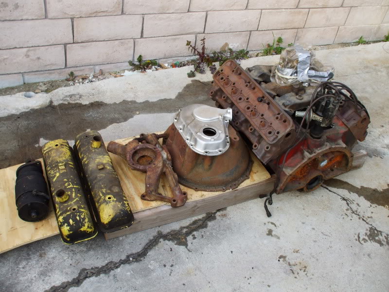 crank, heads, valve covers, front cover, oil pan, water housing,