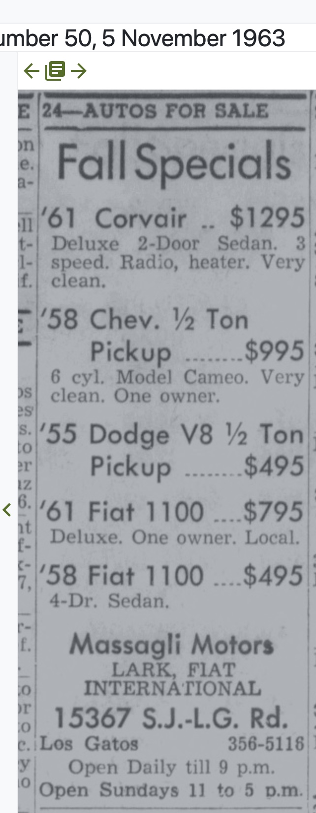 Walton Motor Co.,   \ 1801 El Camino Real\   San Carlos, CA   (1958 - 1961)   San Francisco Chronicle - Nov 1960       (C 1960)              (C4 - 5 Nov 2013)            (OW EEel - 15082019)     1959     ( 03042022)