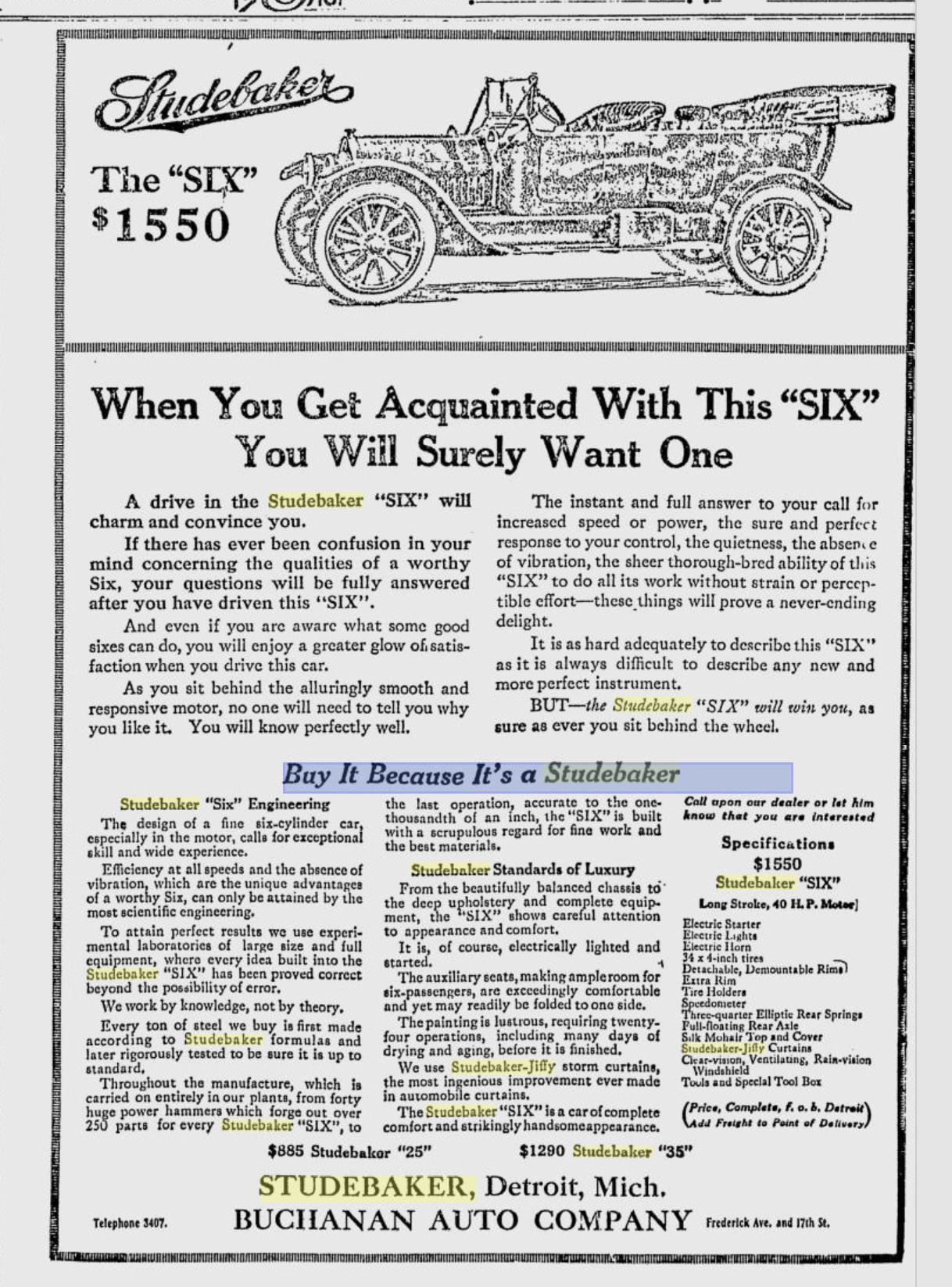Studebaker Corp of America dist., \ Ship& Main\ St. Joseph, Michigan ( C 1918) ( Lark8girl - SDC Forum - Nov 2008) (The) Studebaker Corp. of Amer., (J O Andrews) \ 523 Genessee Ave.\ Saginaw MI (C 1916) Ref... (20 Apr 2013) Studebaker Motor Cars, Wm. Noor) \ 106-110 Apple Ave.\ Muskegon, MI (C 1925) Ref... (20 Apr 2013) Studebaker Sales & Service, Jackson, MI 1939 (24122018)
