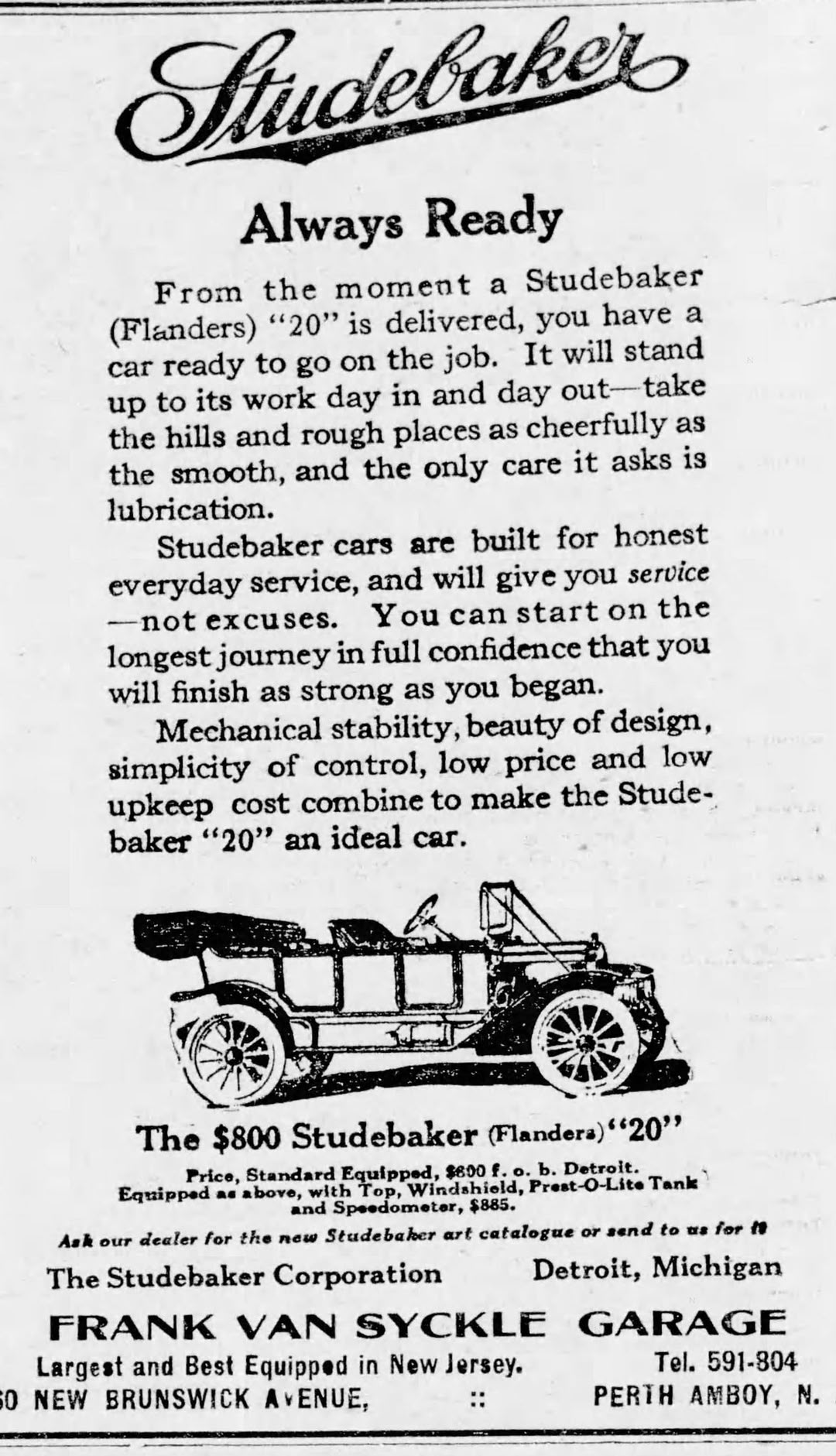 Studebaker Sales Company, \ 437 North Ave. Westfield, NJ