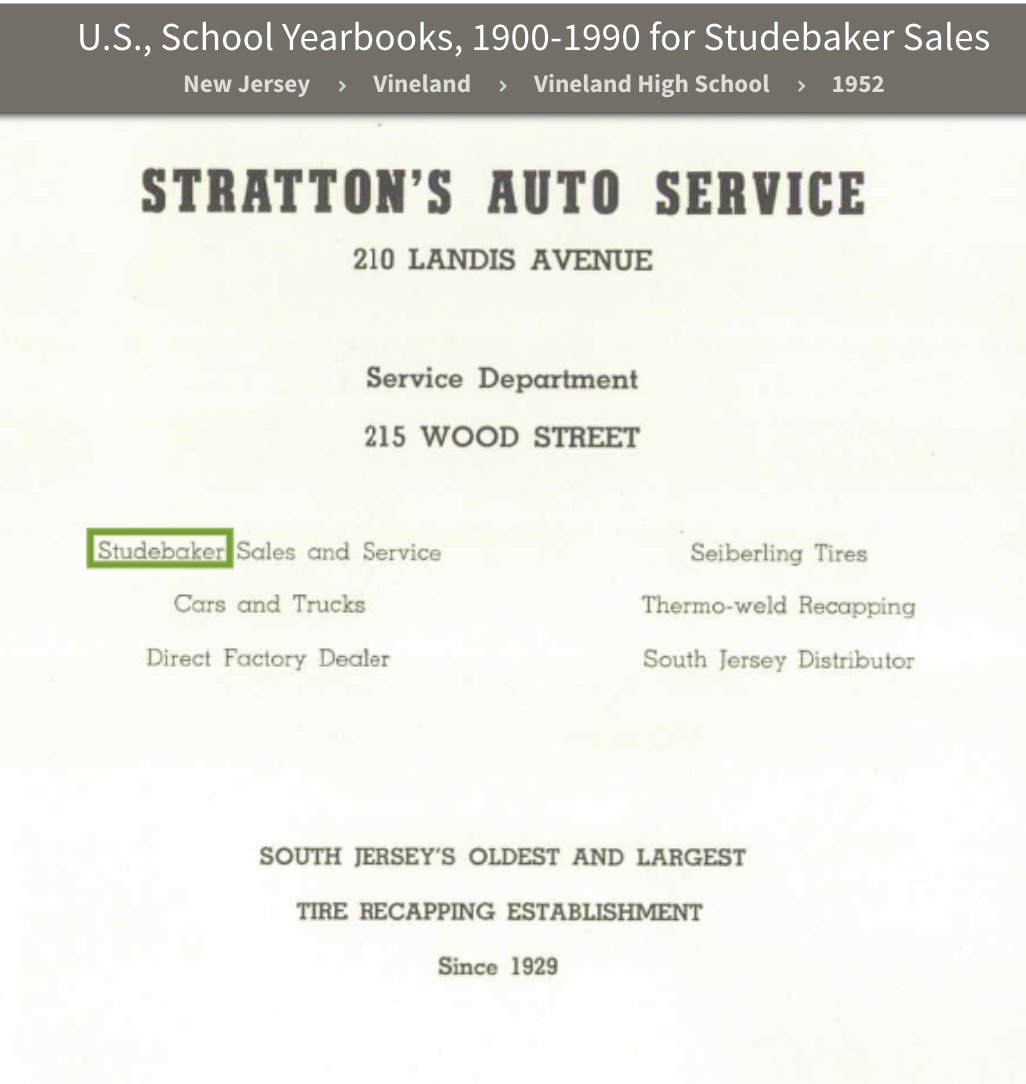 Stratton's Auto Service, \ 215 Wood St. \ Vineland, NJ 1952 (16122018) 1930 Est. (03052021) 2.. 3..