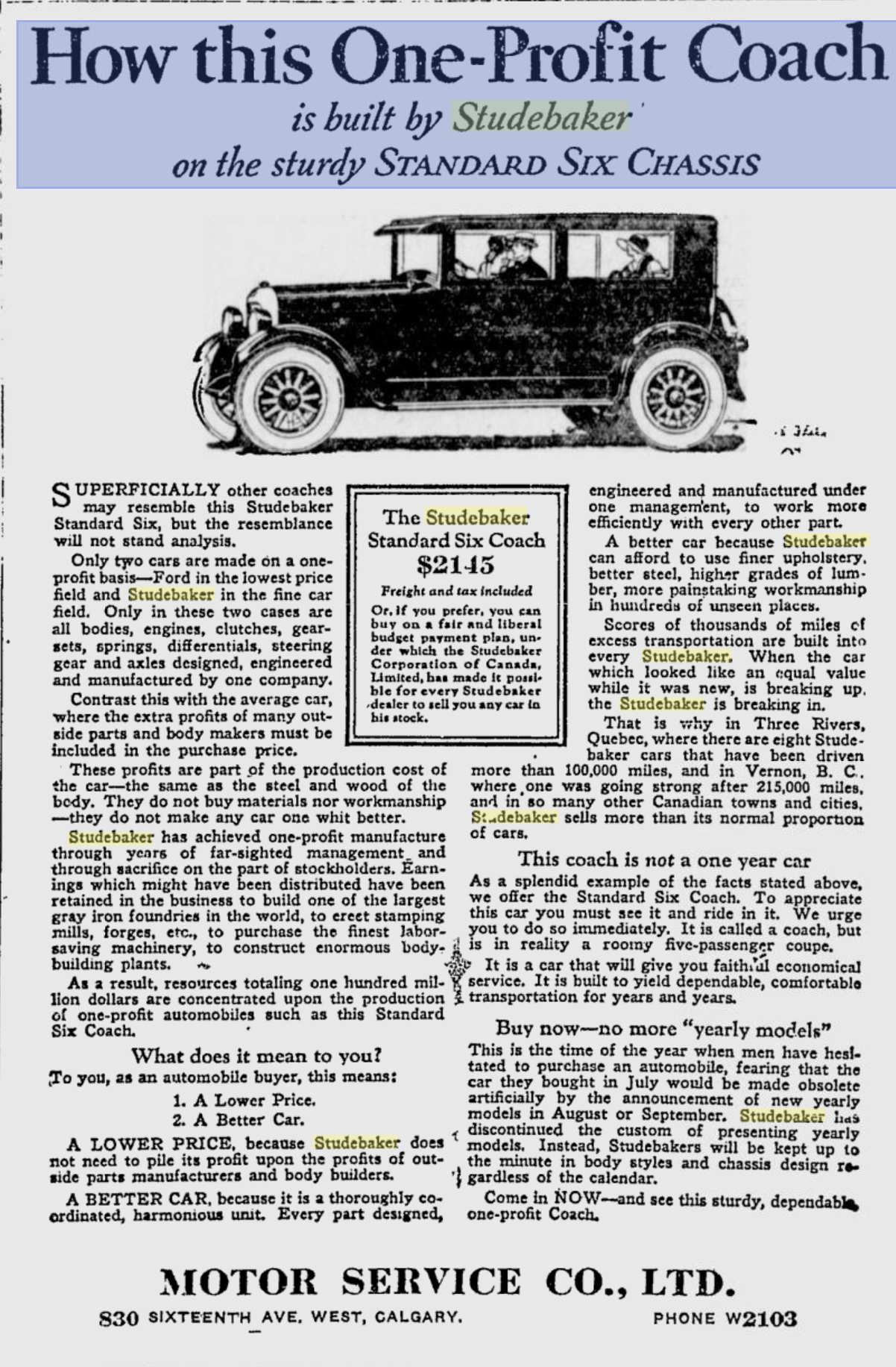 Studebaker Limited, \Pound Lane, Willesden\ (Managing Director - Eustace H. Watson) London, W.1., UK (24 Dec 2011) (c3) (C 1923) Ref... (04 Sep 2013)