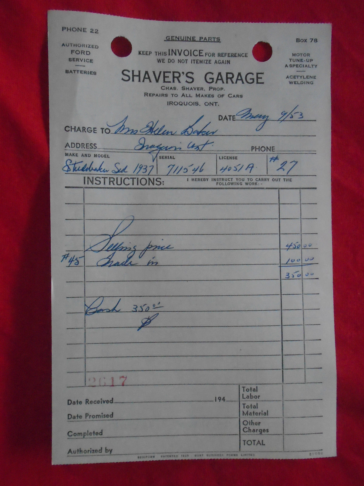 Fred Henwood Motors, \ 2500 Eglinton Ave. E.\ Toronto, Ont. Flint Motors, Toronto, Ont (Est 1952) F. W. Wood Sales, (Frank Wood) \South Street\ (Phone 403) Goderich, Ontario (C 1939-1947) (Owen Delve - 23112014)