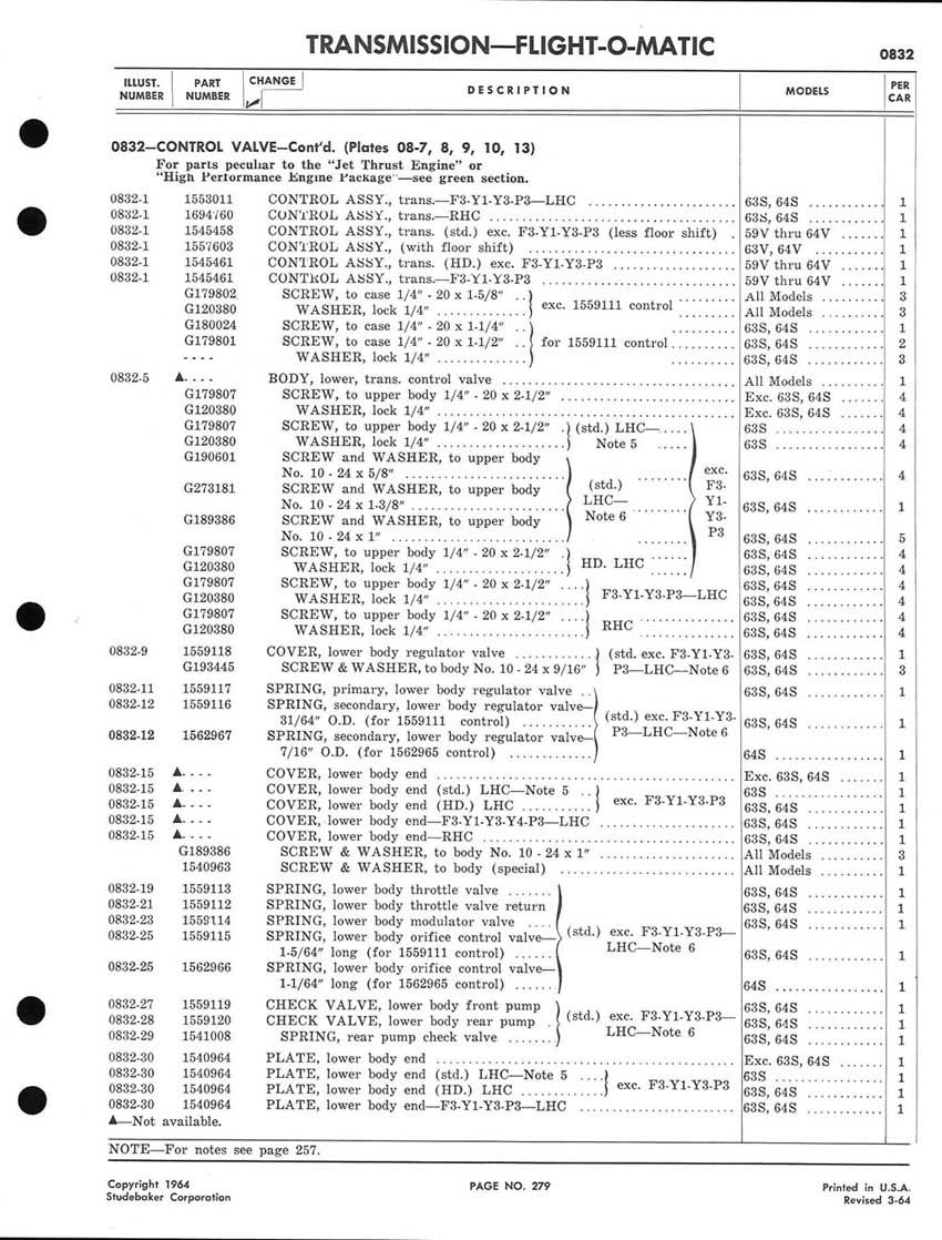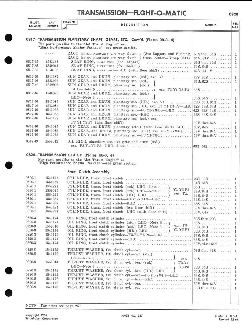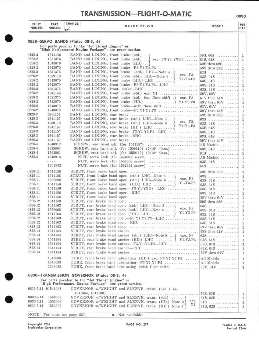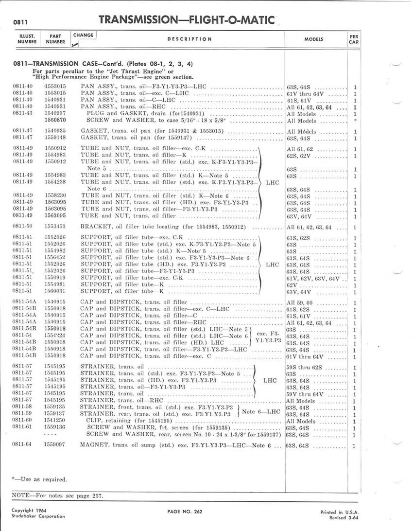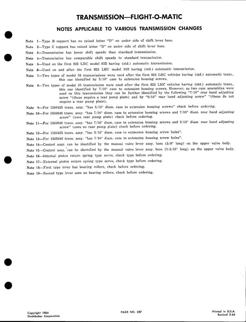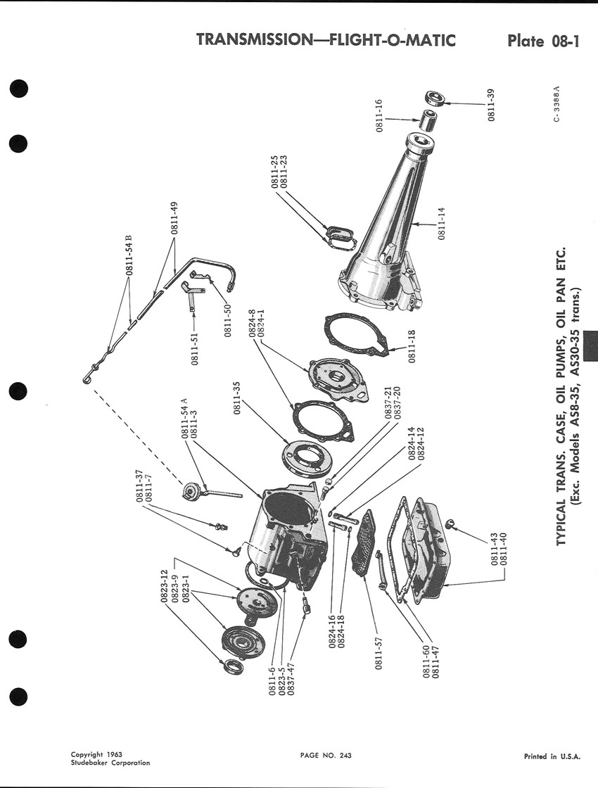 Bob's Studebaker Resource Website 1959-1964 Studebaker Chassis Parts manual - P243 - 292 - Flight-O-Matic Transmission
