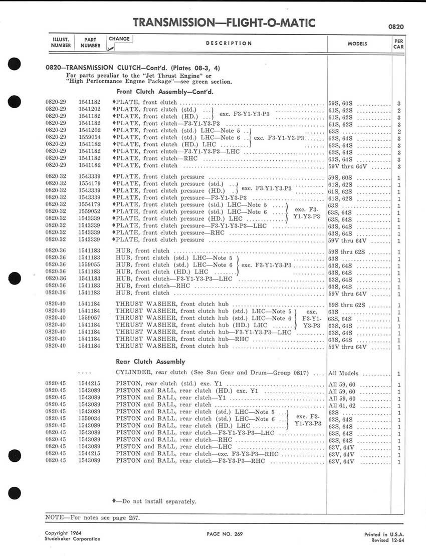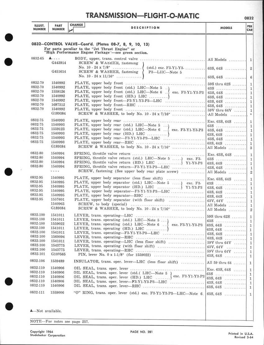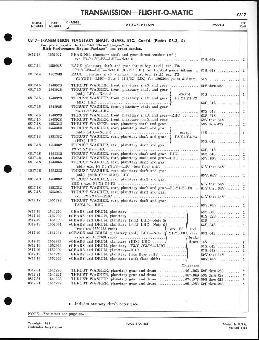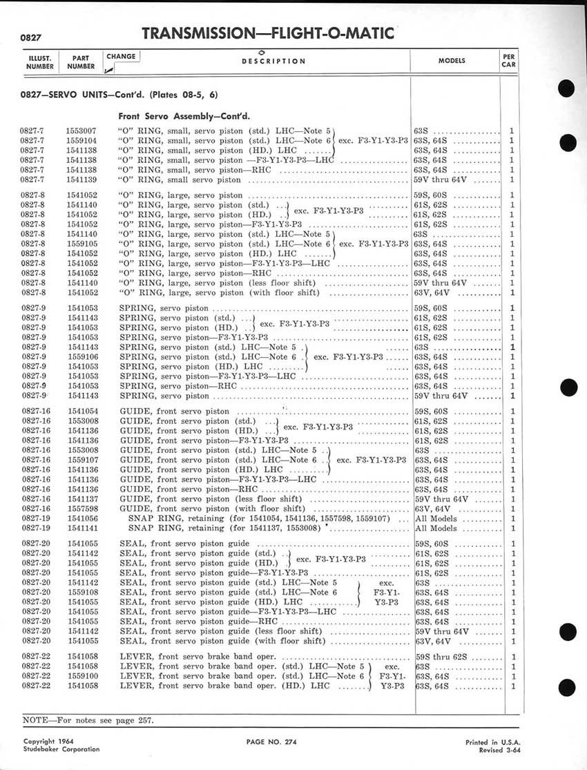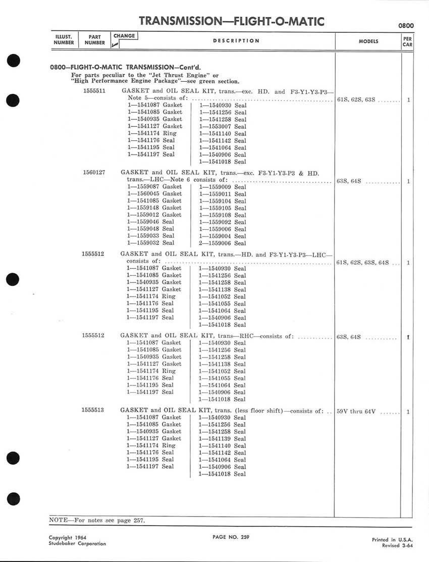 Bob's Studebaker Resource Website 1959-1964 Studebaker Chassis Parts manual - P243 - 292 - Flight-O-Matic Transmission