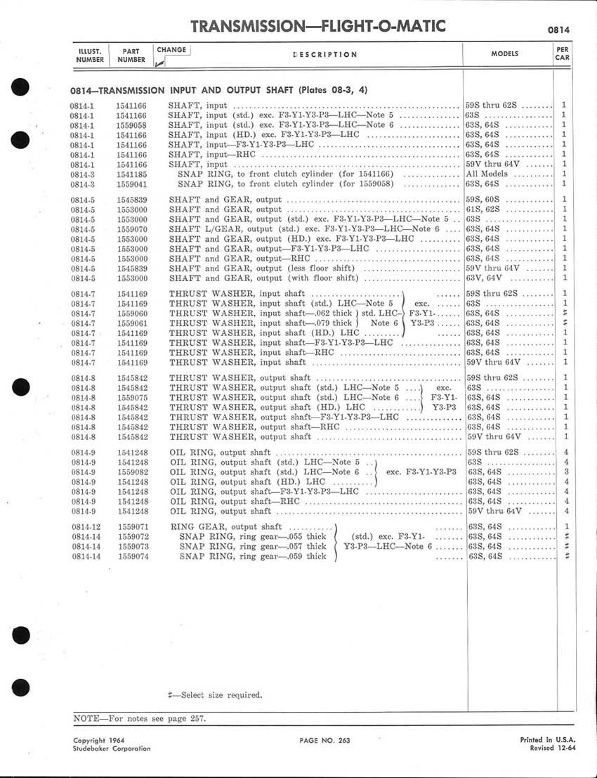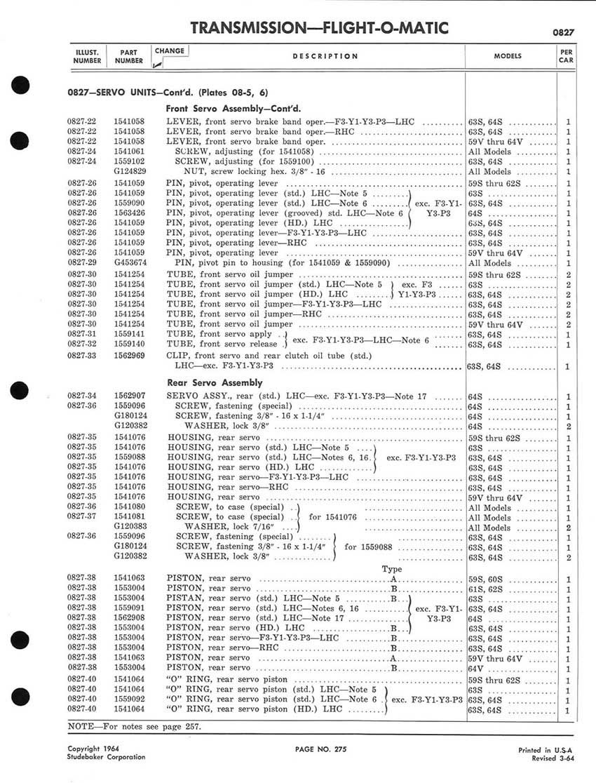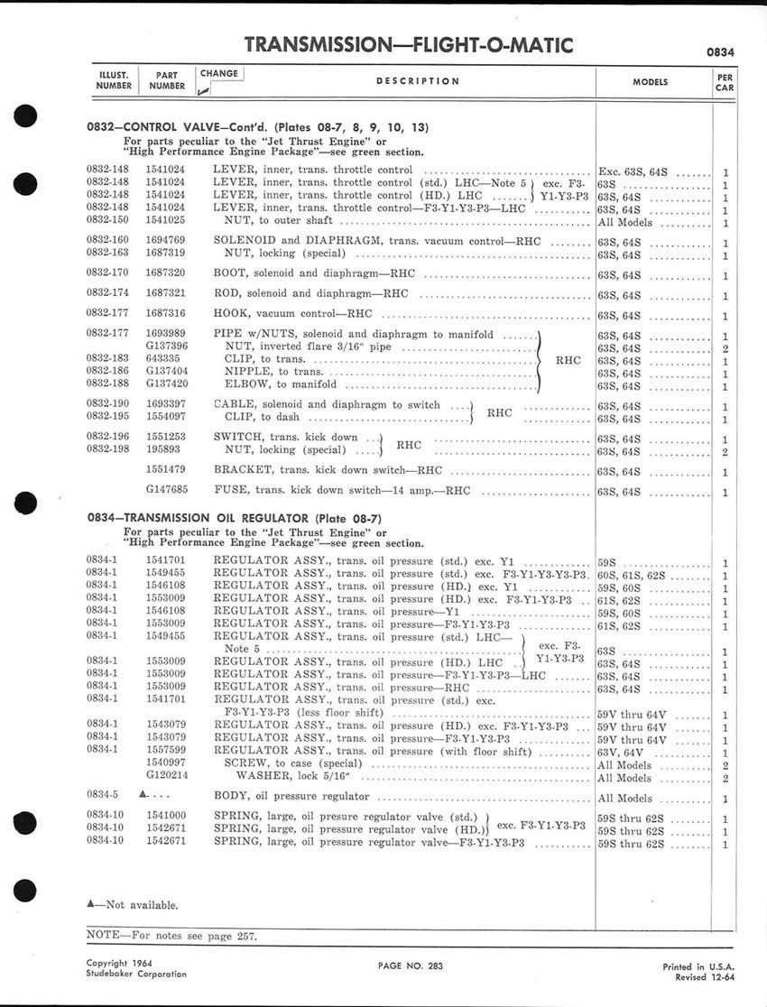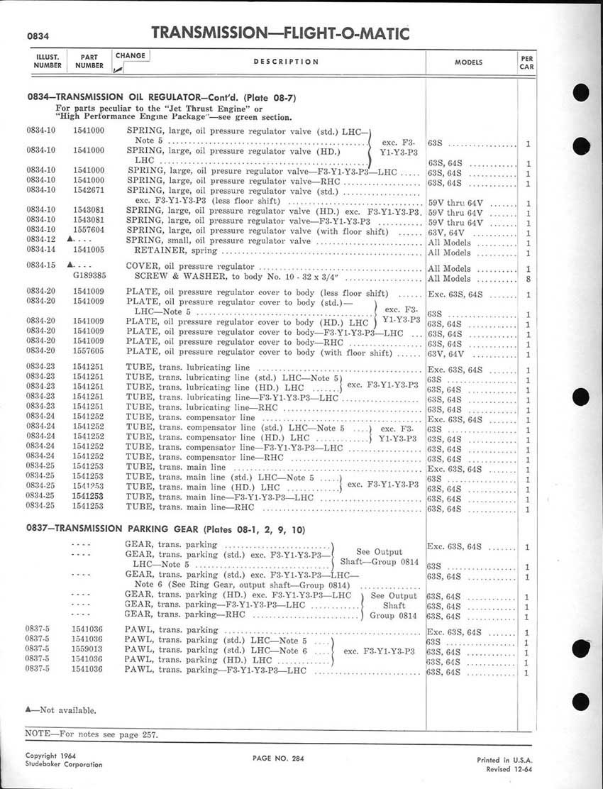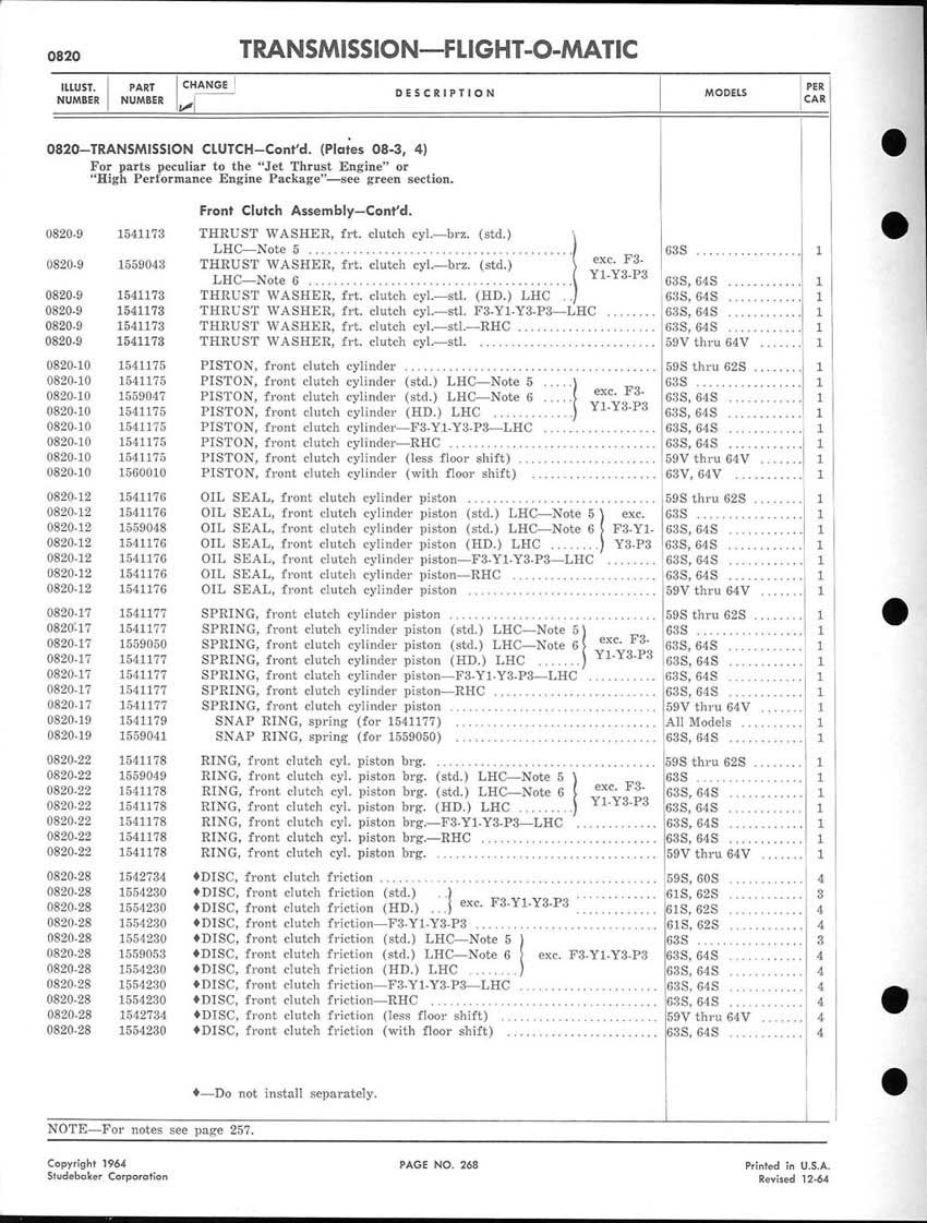 Bob's Studebaker Resource Website 1959-1964 Studebaker Chassis Parts manual - P243 - 292 - Flight-O-Matic Transmission