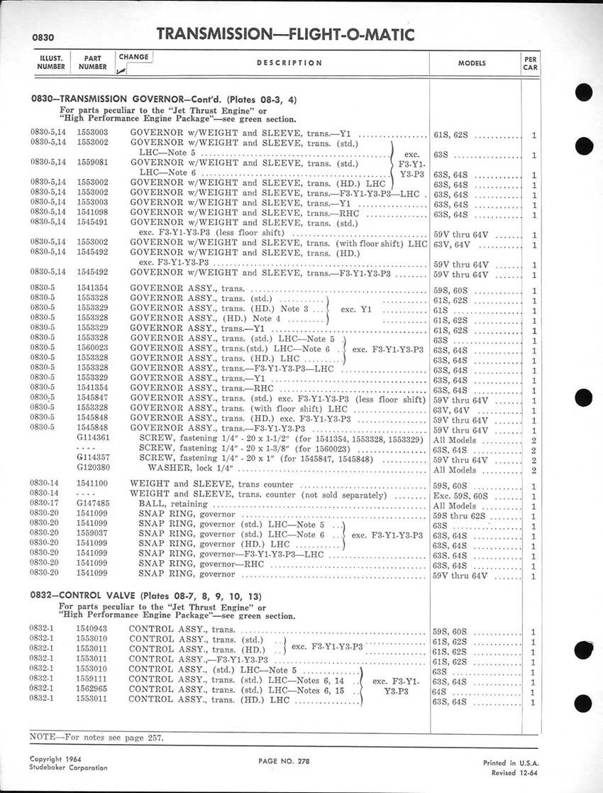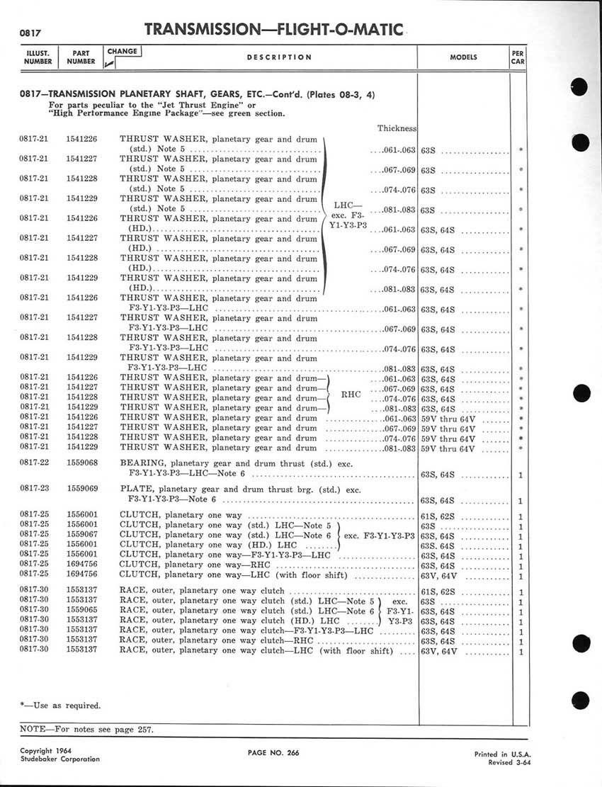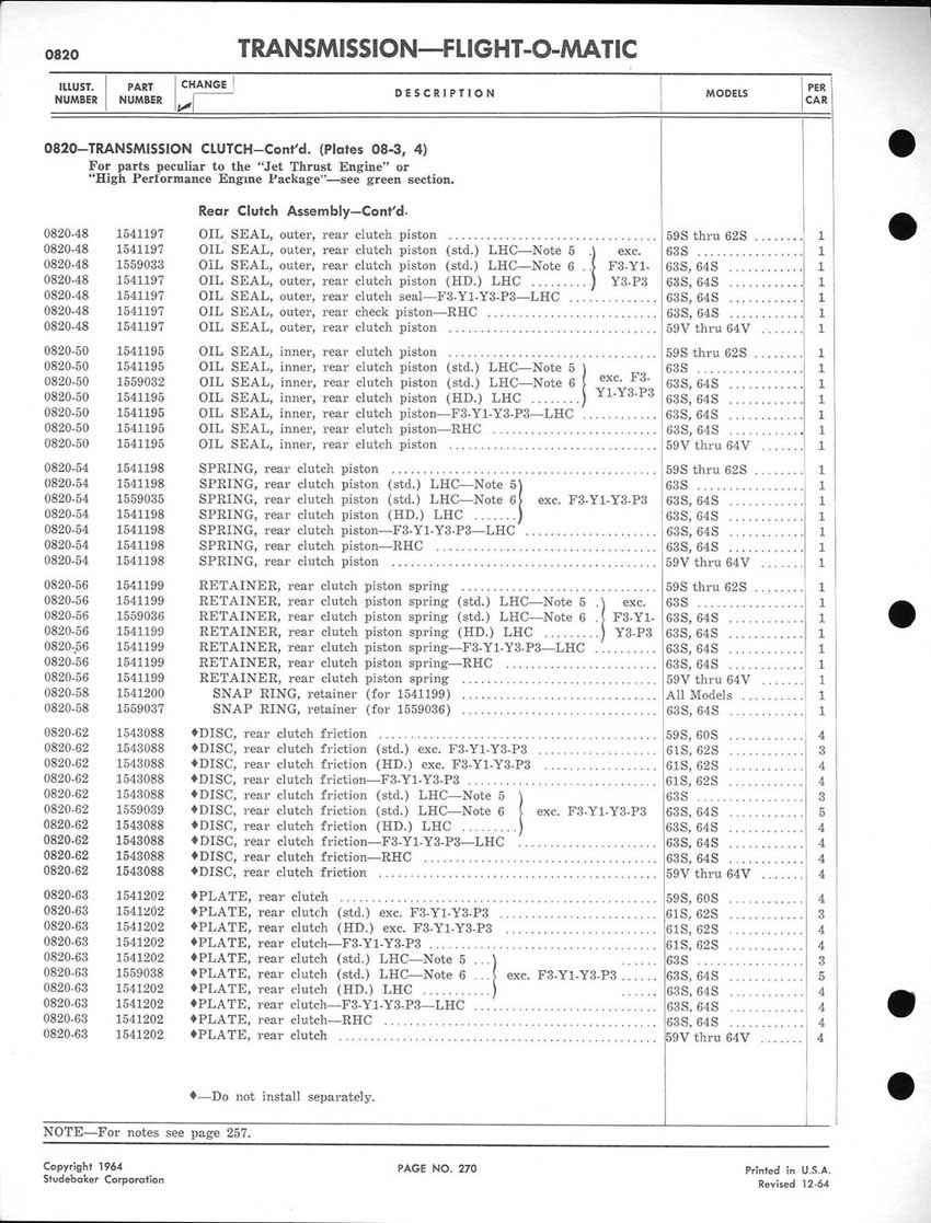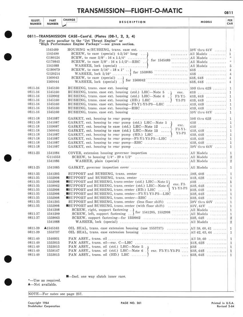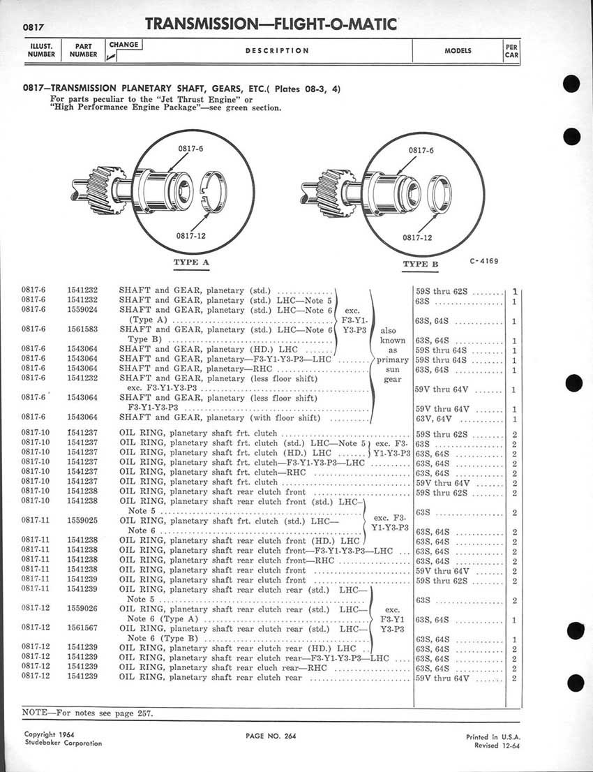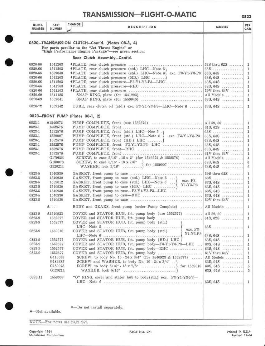 Bob's Studebaker Resource Website 1959-1964 Studebaker Chassis Parts manual - P243 - 292 - Flight-O-Matic Transmission