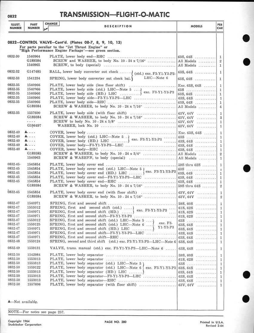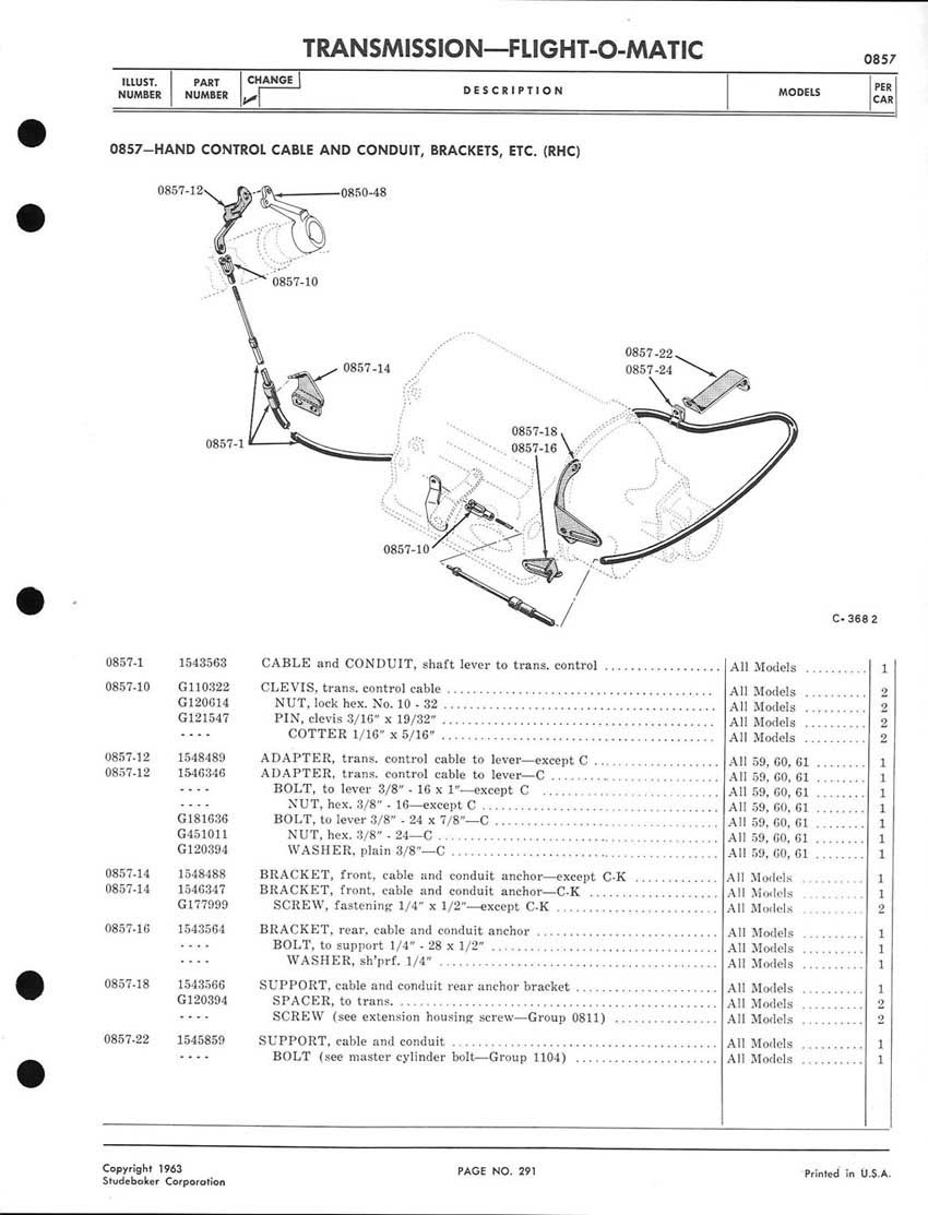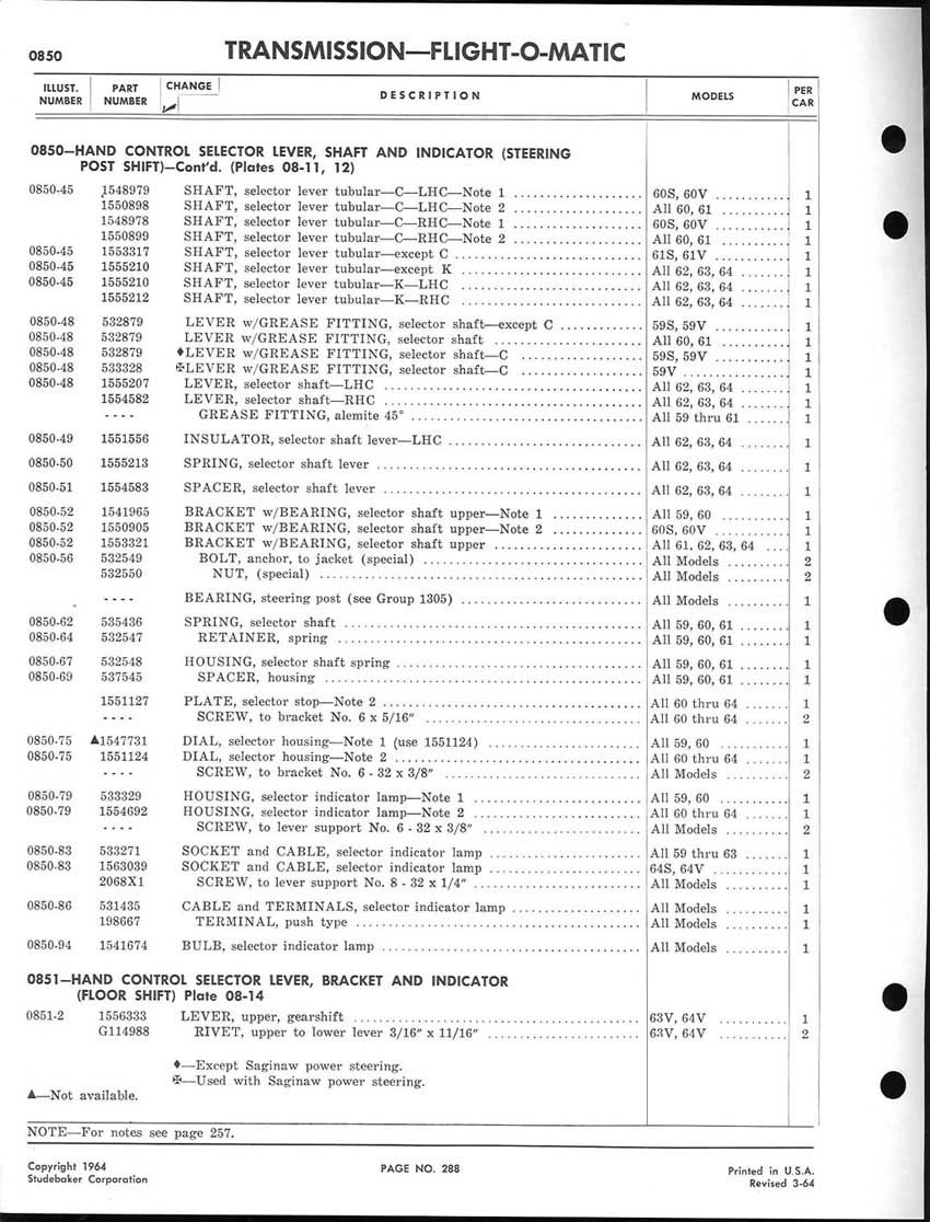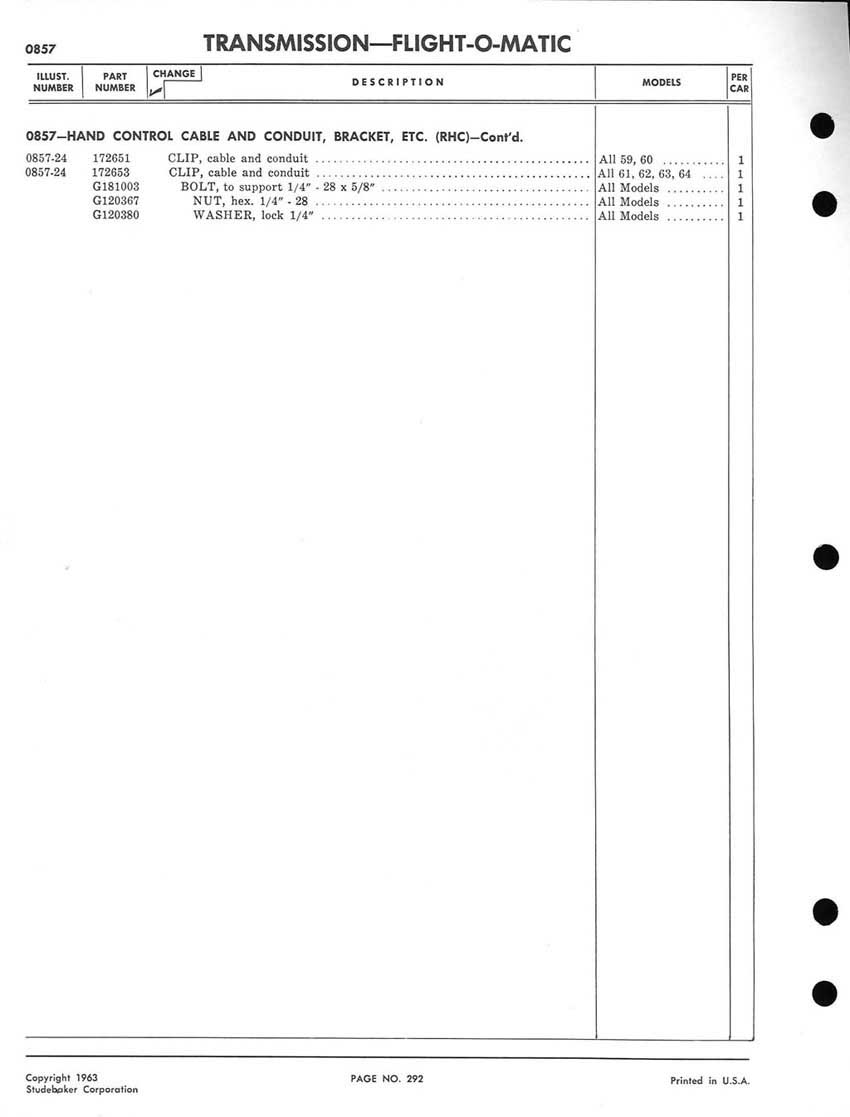 1959-1964 Studebaker Chassis Parts manual - P243 - 292 - Flight-O-Matic Transmission