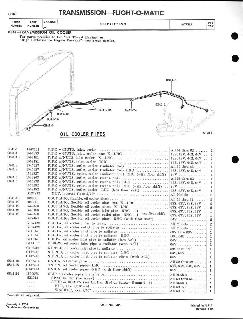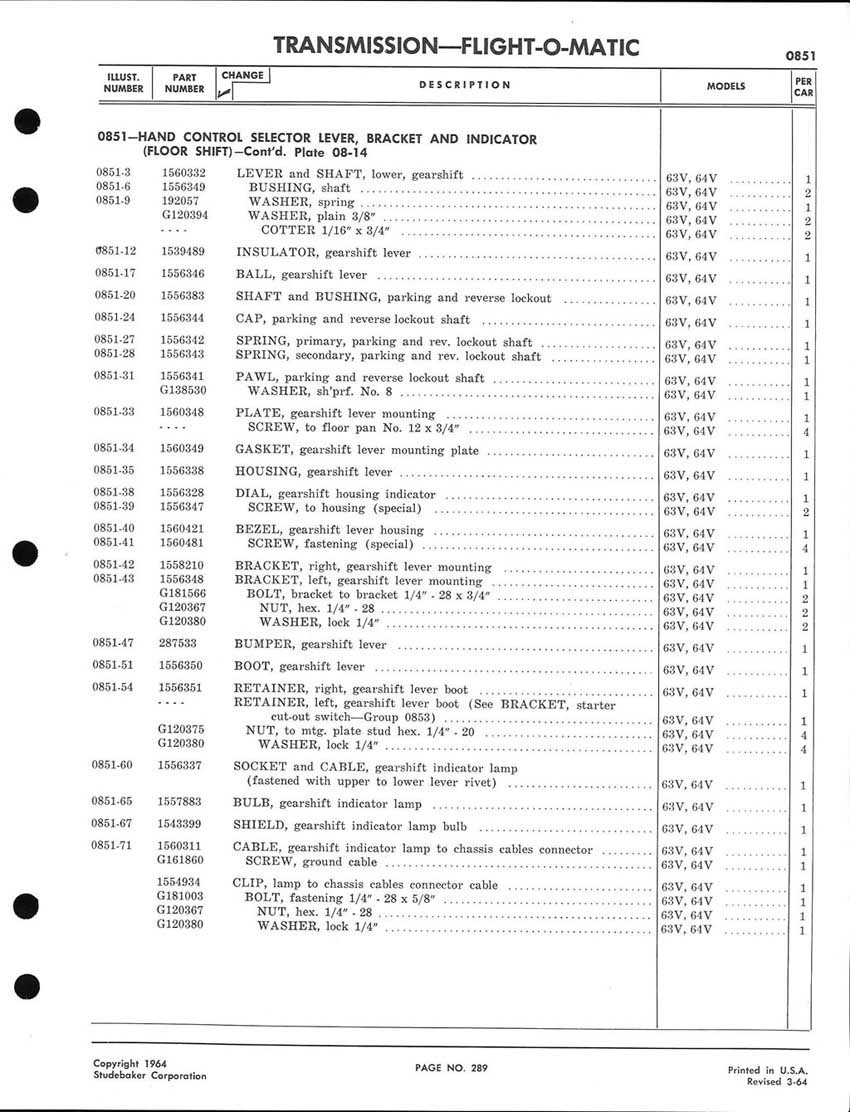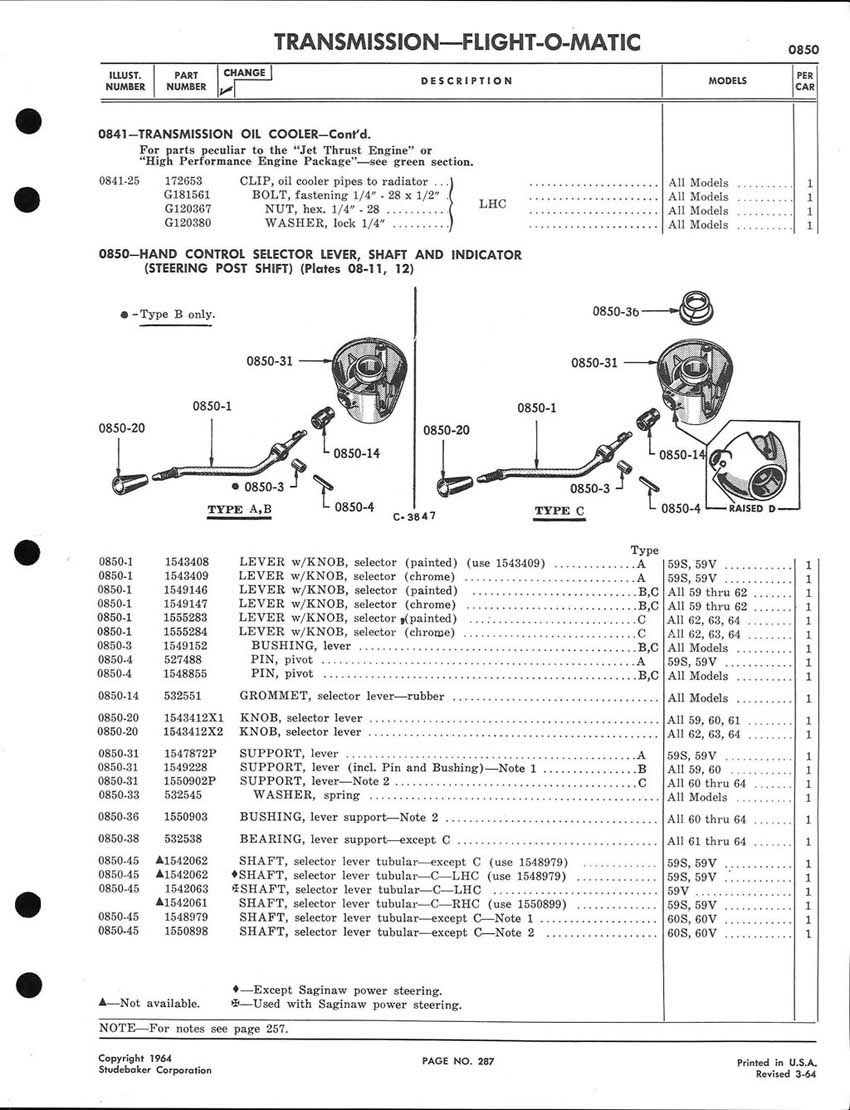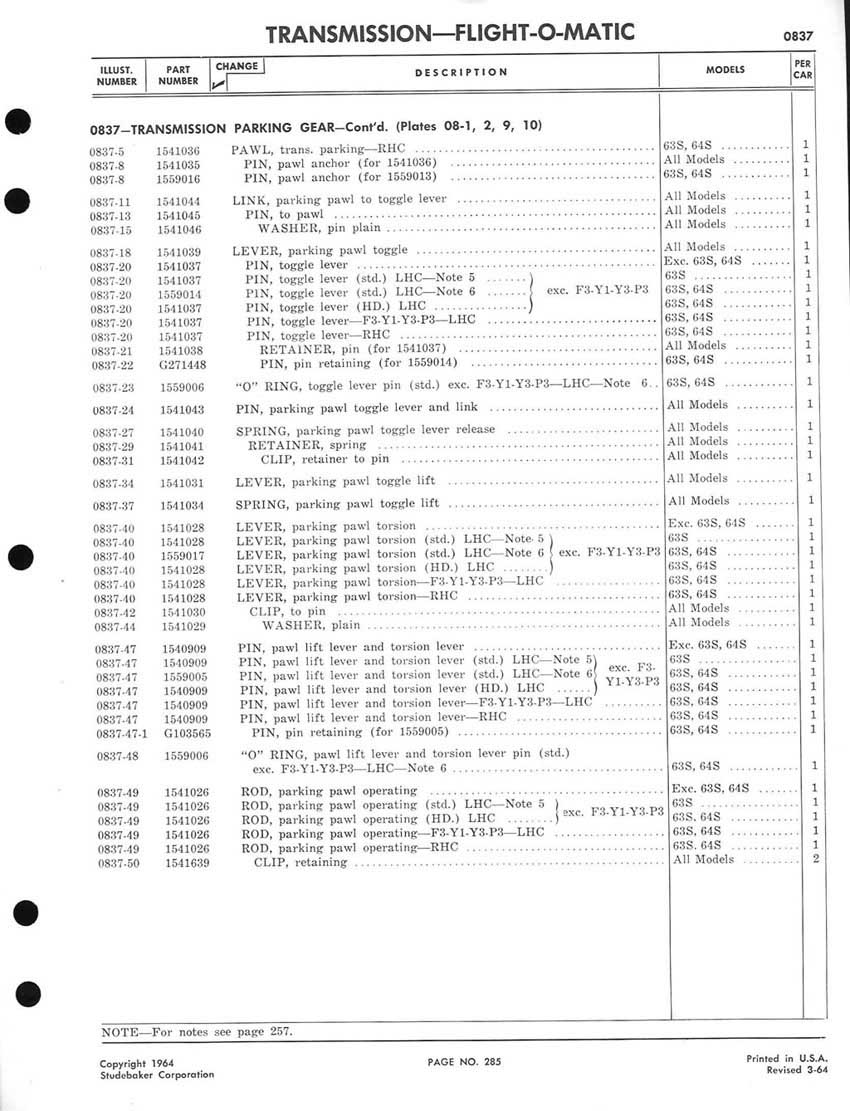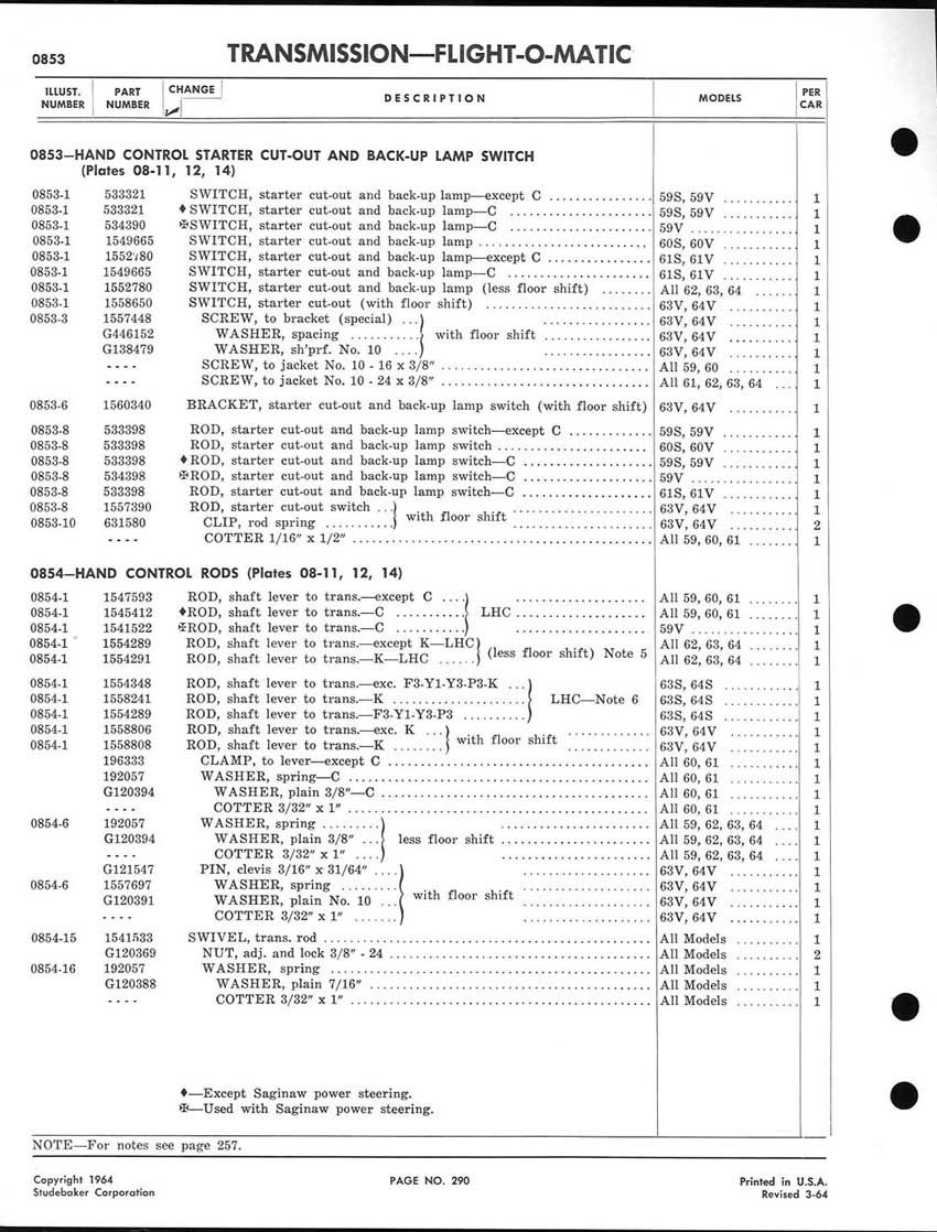 1959-1964 Studebaker Chassis Parts manual - P243 - 292 - Flight-O-Matic Transmission