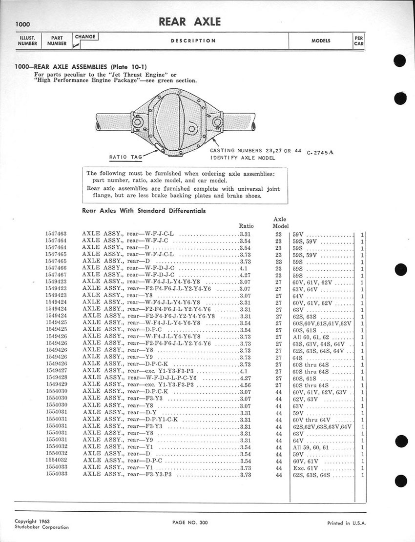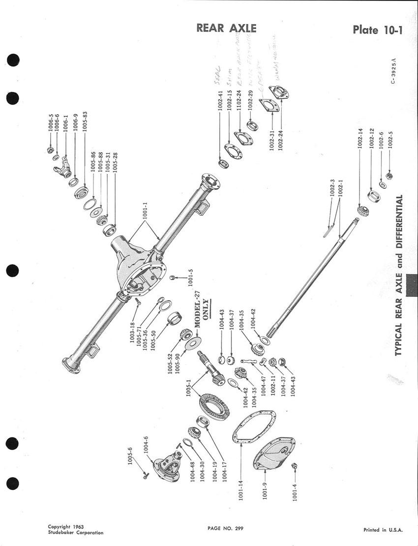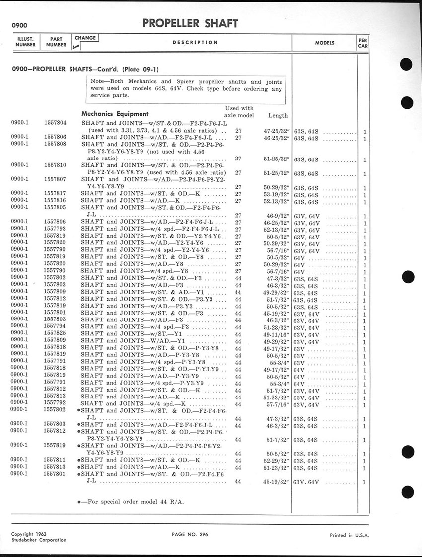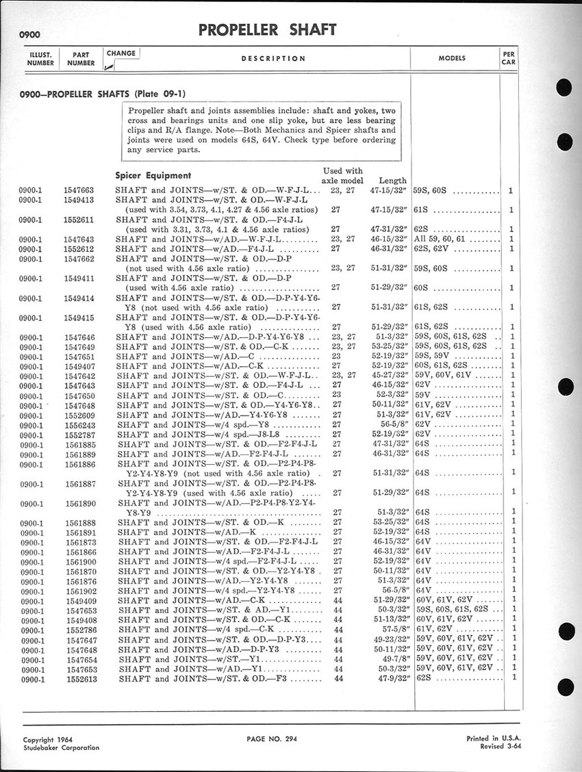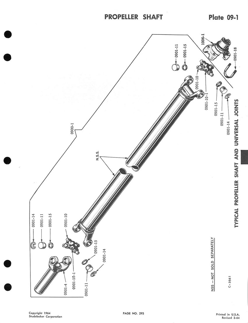 Bob's Studebaker Resource Website 1959-1964 Studebaker Chassis Parts manual - P293 - 308 - Driveshaft - Rear Axle