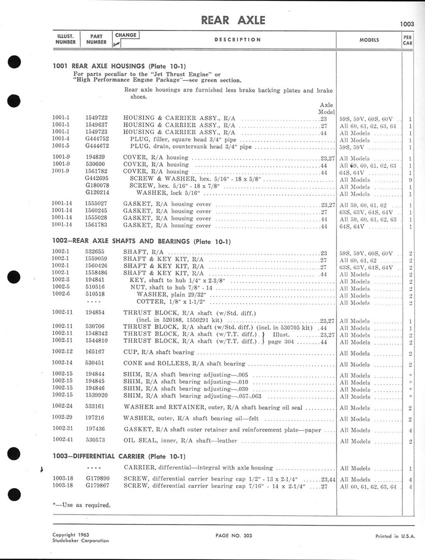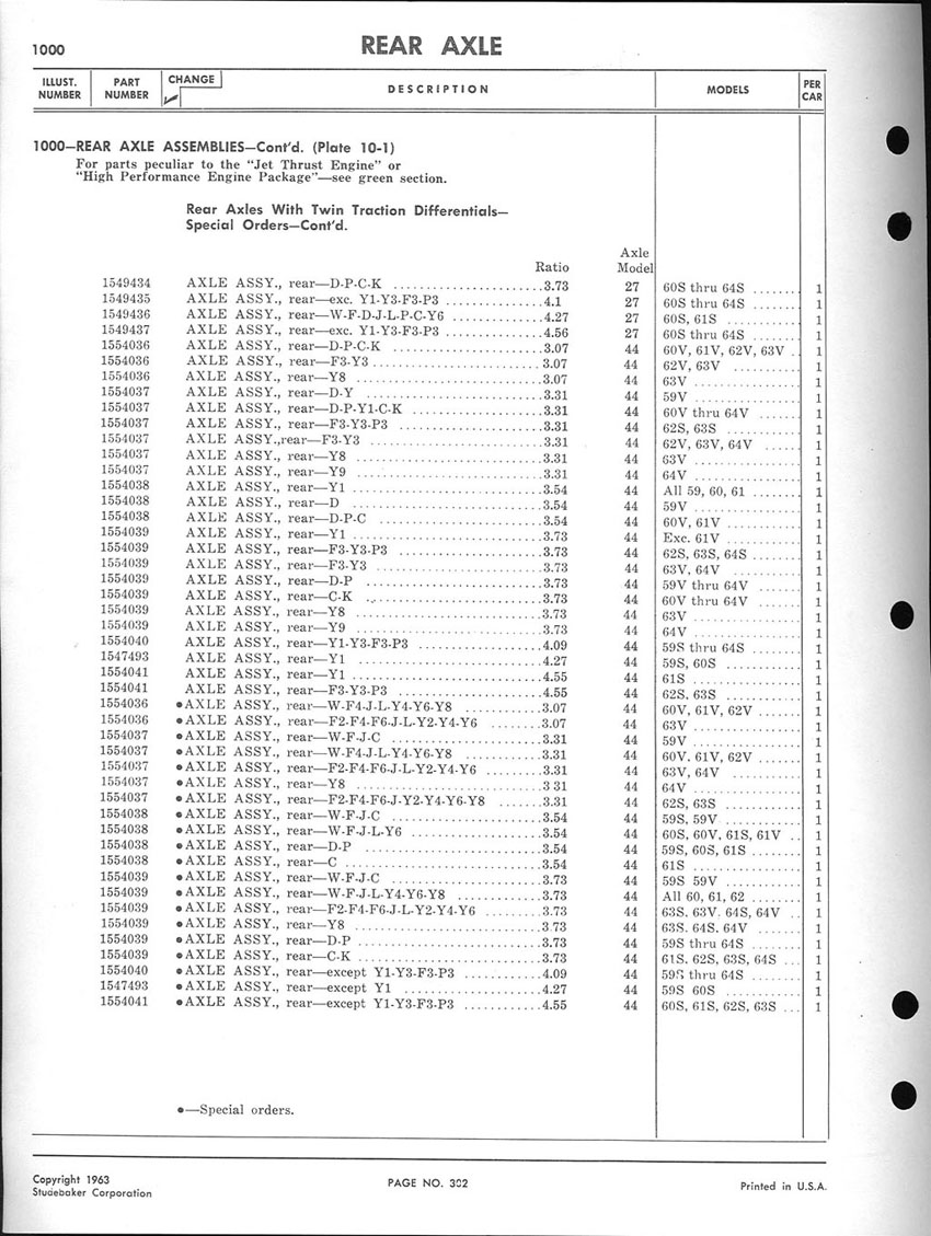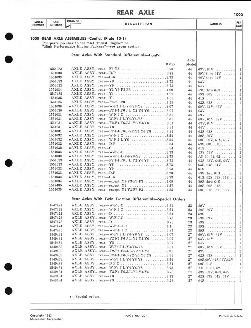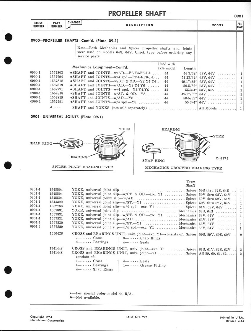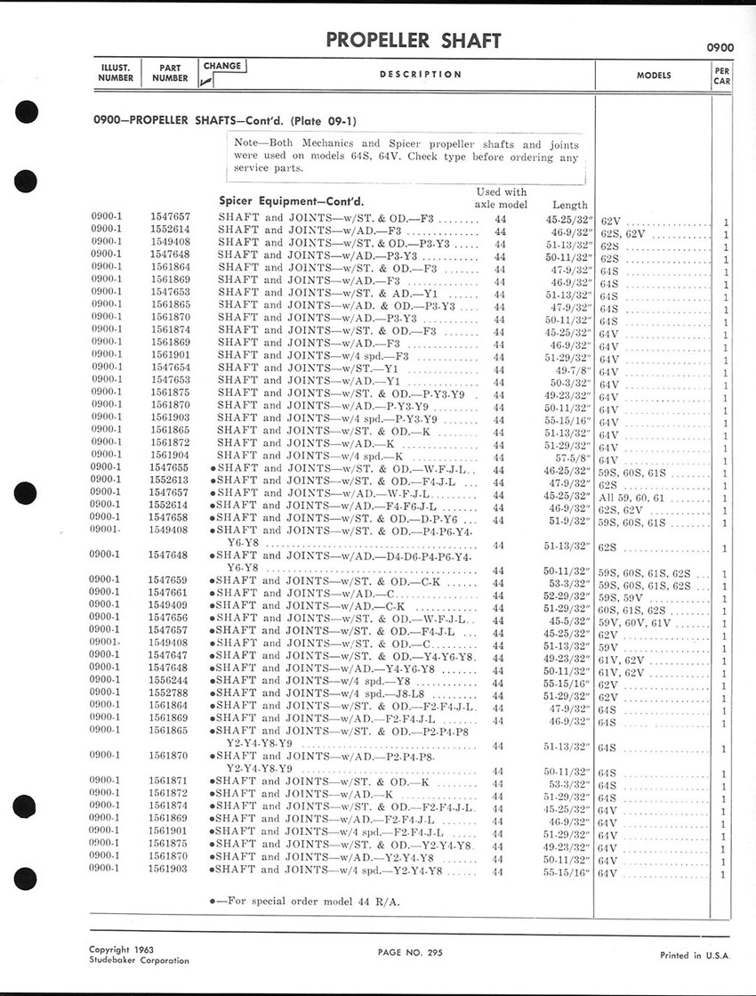Bob's Studebaker Resource Website 1959-1964 Studebaker Chassis Parts manual - P293 - 308 - Driveshaft - Rear Axle