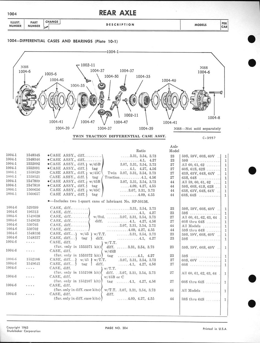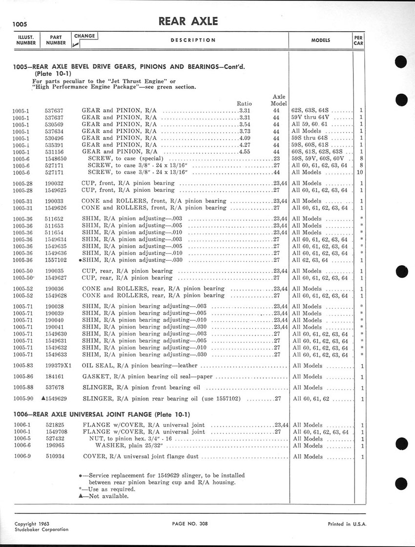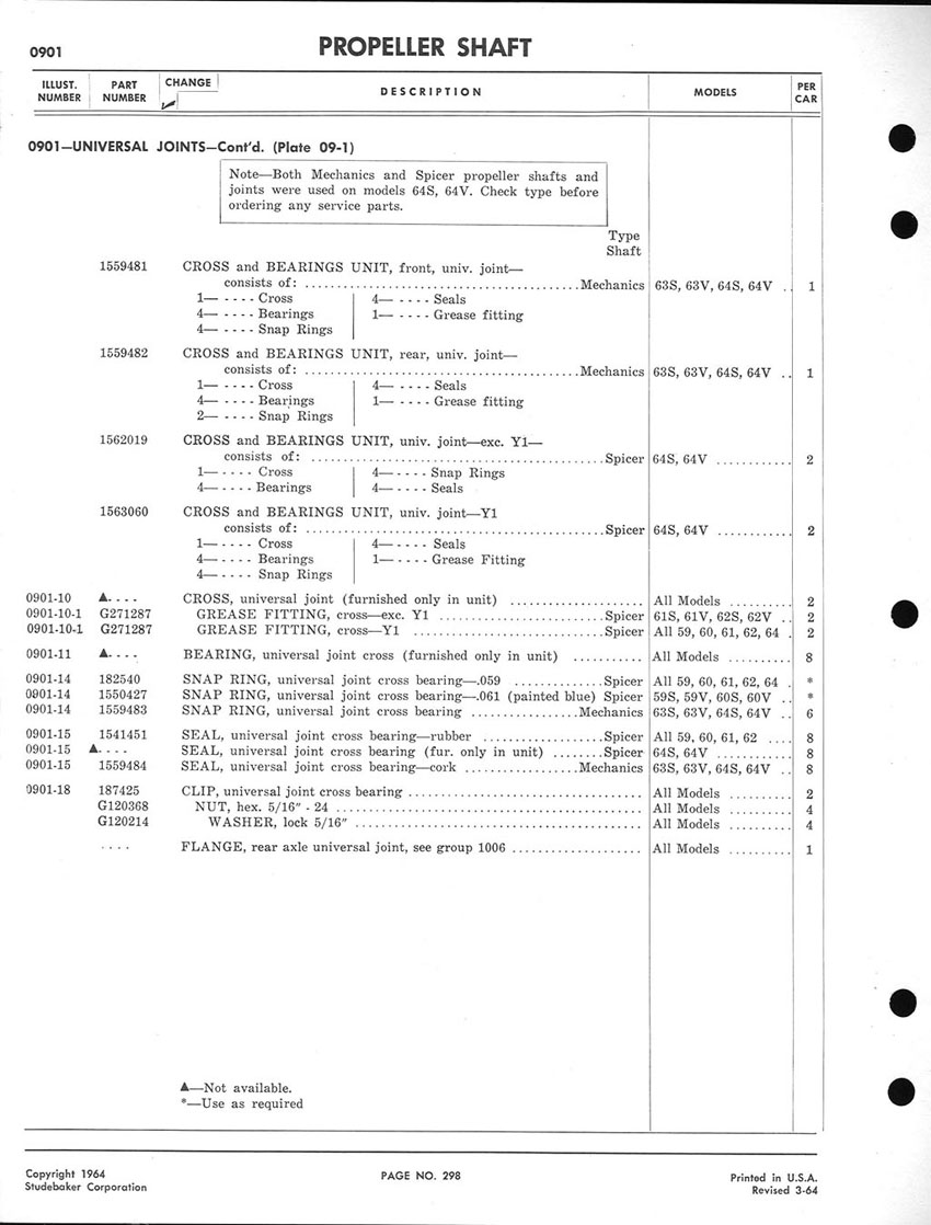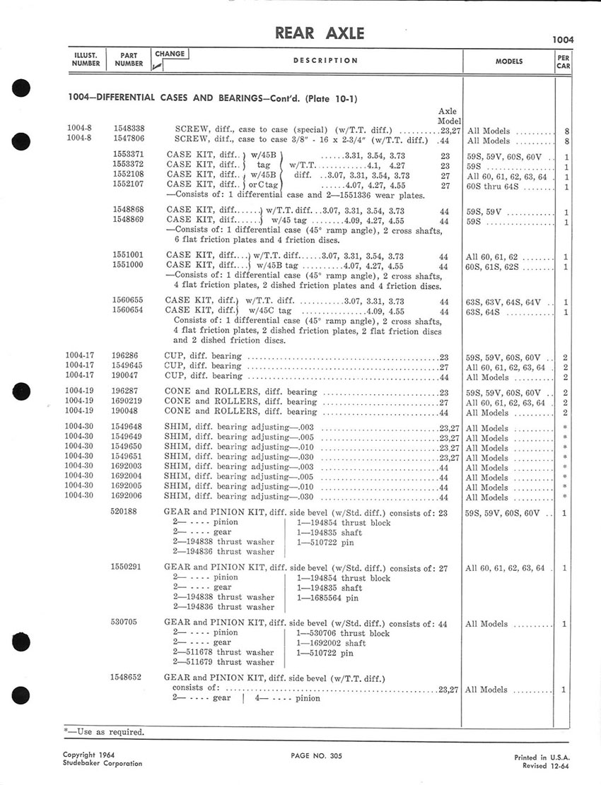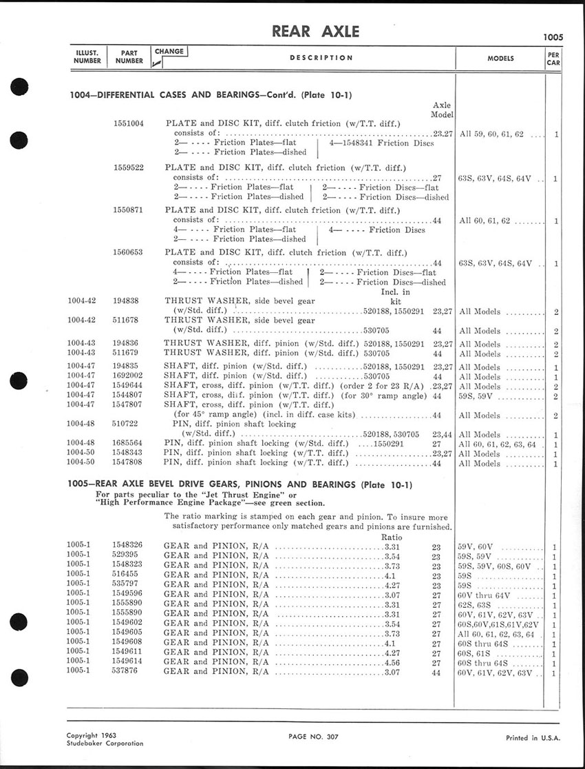 Bob's Studebaker Resource Website 1959-1964 Studebaker Chassis Parts manual - P293 - 308 - Driveshaft - Rear Axle