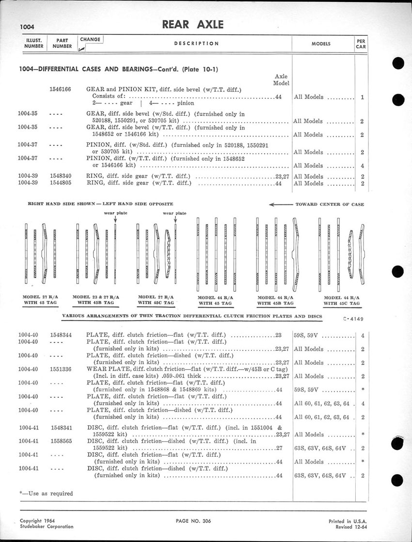 1959-1964 Studebaker Chassis Parts manual - P293 - 308 - Driveshaft - Rear Axle