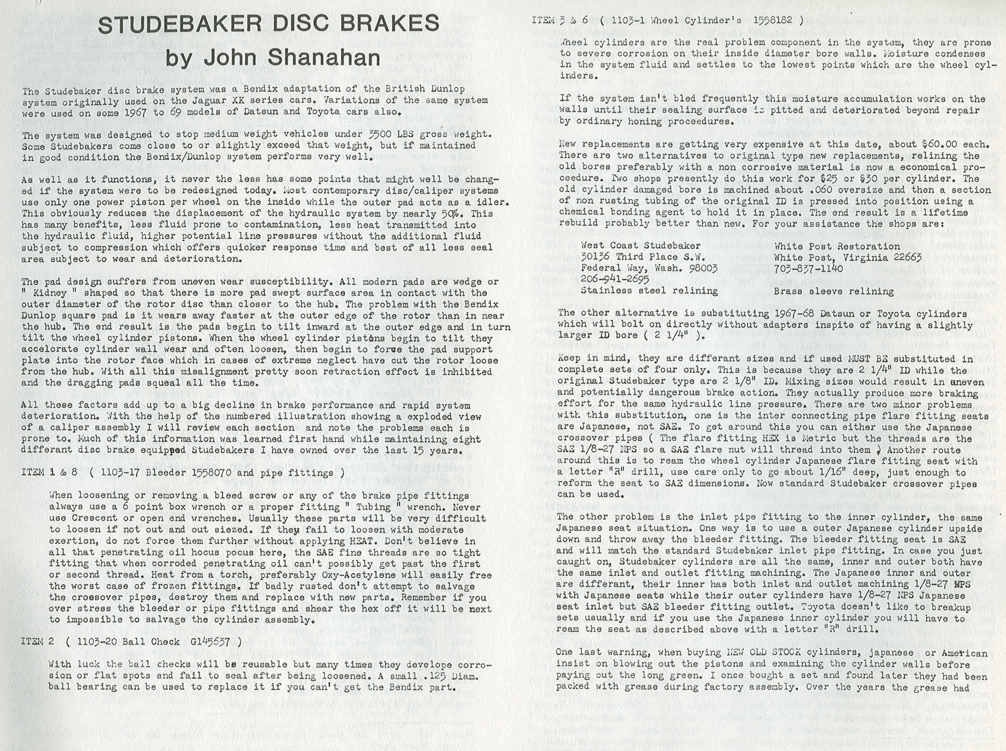 Bob's Resource Website (2007)Studebaker Disk Brakes From Turning Wheels, March 1982