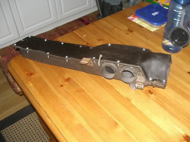 The box is two parts, riveted together; a formed cardboard upper and a fiber-reinforced thermoplastic lower.