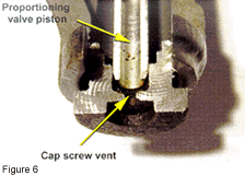 Most proportioning valves are not vented through the cap screw. There is not a quick check for these types of valves. These valves should only be checked if the customer's complaint indicates a possible proportioning valve problem. Most shops do not have pressure gauges so the process used to diagnose the problem will have to be a process of elimination. All other possible causes will have to be checked before the proportioning valve is condemned.