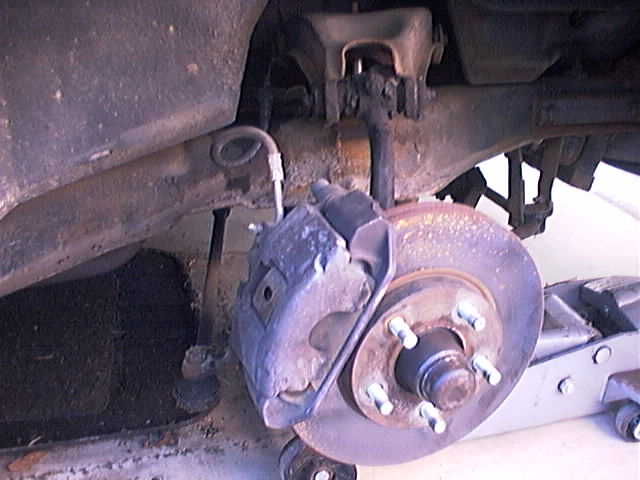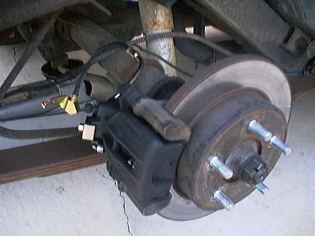 Once this is completed, its a matter of following the instructions in the Haynes manual for a 98 Mustang GT. You bolt on the caliper mount bracket:
