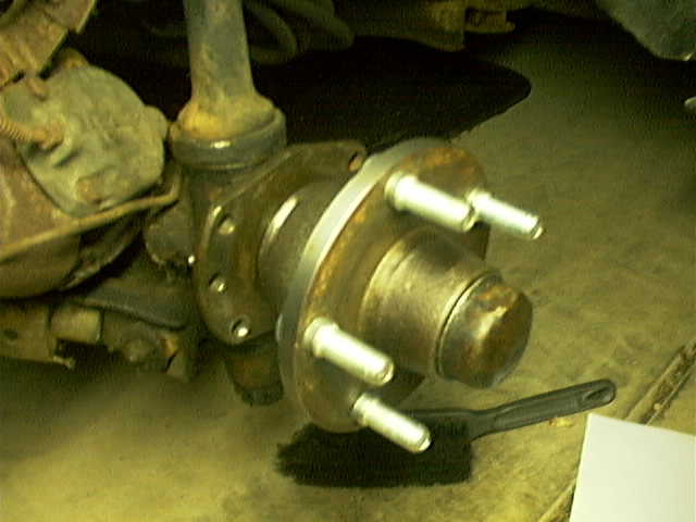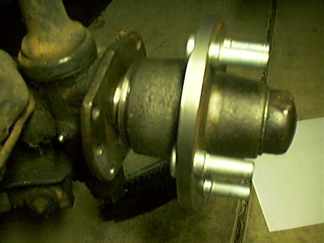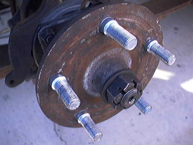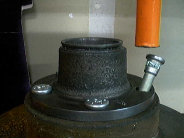 Setting up the rear hubs is the same as the front, except the diameter inside the rear disc is larger then the front, so the hub doesnt need to be machined. As with the front, the longer wheel studs with shoulders were pressed in. The holes in the disc were drilled out, as with the front discs.