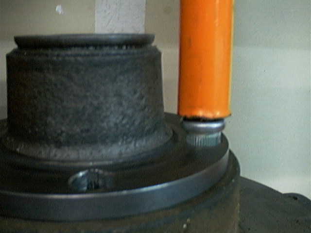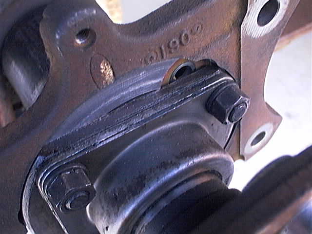 Here is the hub back on, and as you can see, designed in the bracket inner dia lets the hub sit inside of it ... so if the grease seal fails ...
