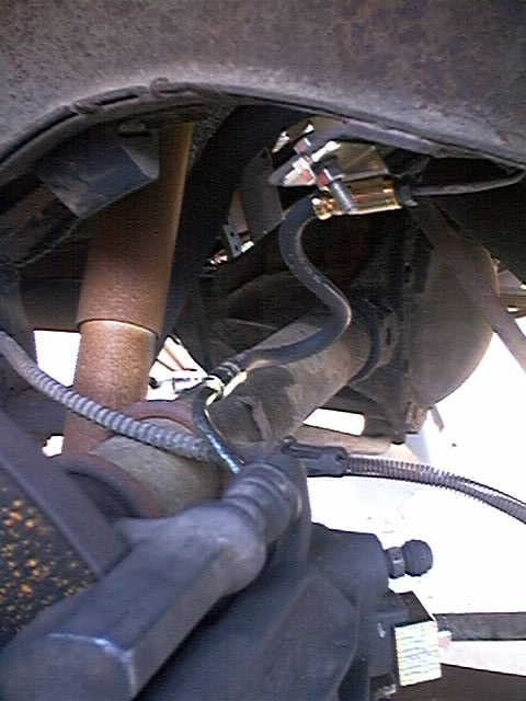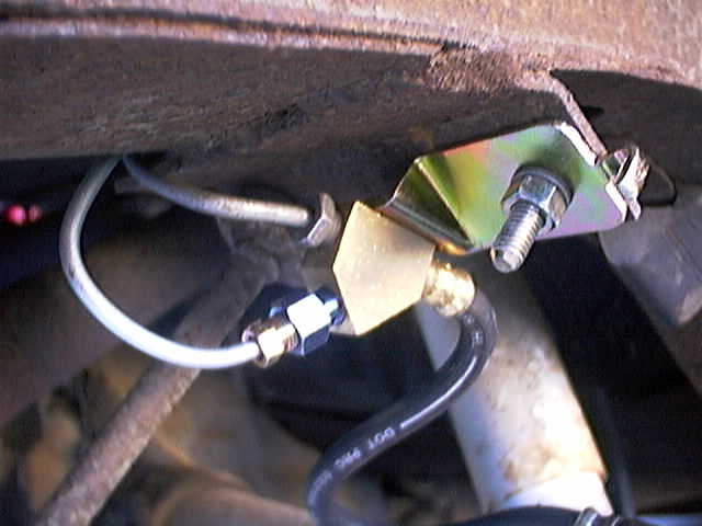 I bought new hoses for a 98 Mustang GT from Autozone, the hoses have brackets as part of the hose assembly. The Avanti has a welded on bracket for the rear swaybar. There is a hole that is unused. This was a perfect place to mount the hose bracket. The length of your shocks should be checked to make sure that when the axle is hanging, there isnt any strain on the hoses: