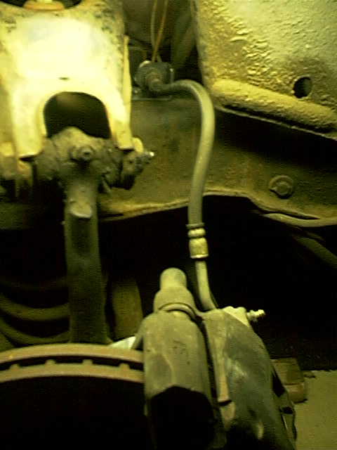 The hoses dont contact anything when the wheels turn back and forth and the only modification to the hose was an adapter fitting on the DRIVERS side to turn the larger flare to the size Studebaker uses. Strange, but the PASS side was the same size as Studebaker and didnt need to be changed. The wrench needed to tighten the hose was a metric, but the flare was SAE - go figure.