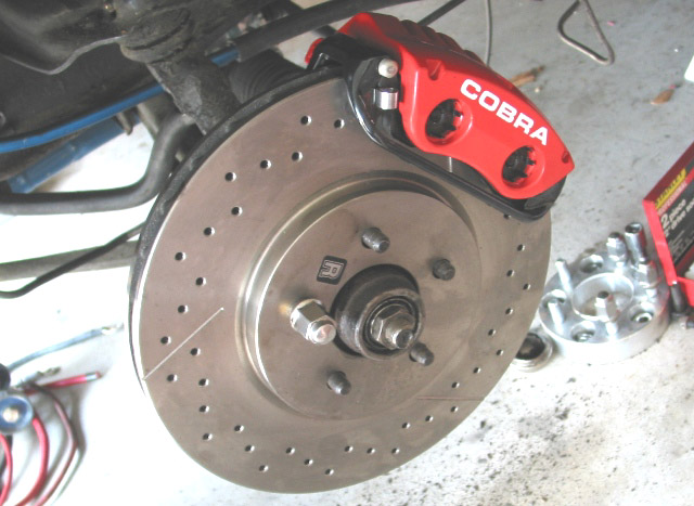 I am trying to put together a first run of 8 sets to be sold. With the cost of material, and unfortunately not being able to do the work machining the adapters myself, my overhead is high. If I do offer these, its NOT going to allow me to quit my job. The Cobra brake setup requires 17 inch rims, that might be a problem for some people. The GT brake setup can all be bought from Autozone, BUT they require the machining of the hubs. Since the person buying the kit HAS the hubs, thats an operation that "he" must have done, that creates a bit of a problem (I have been doing a LOT of thinking on this). So the Cobra kit would be an easier install, but would require larger wheels and "rubber band tires". To me this is a GOOD thing. I have priced the rest of the Cobra kit online, and its just shy of $500 for all the parts (thats AFTER the adapter). This will get you :