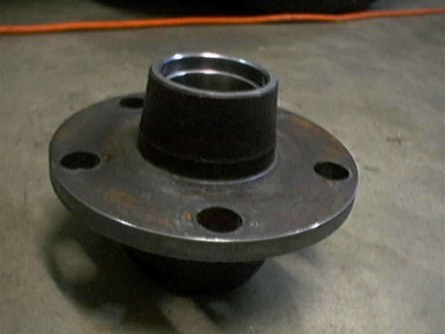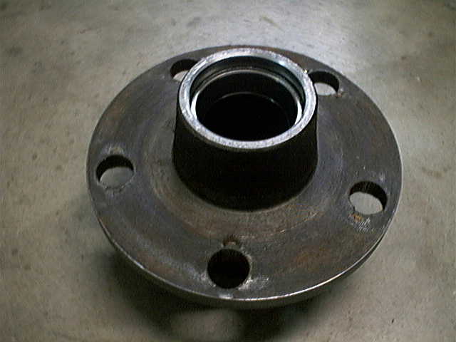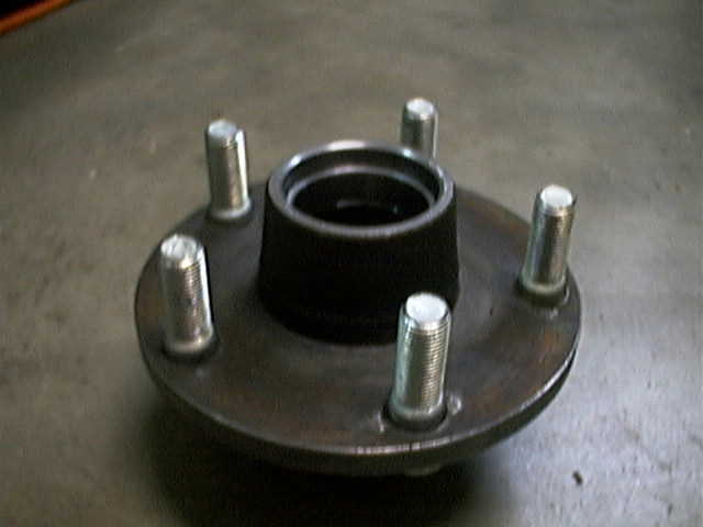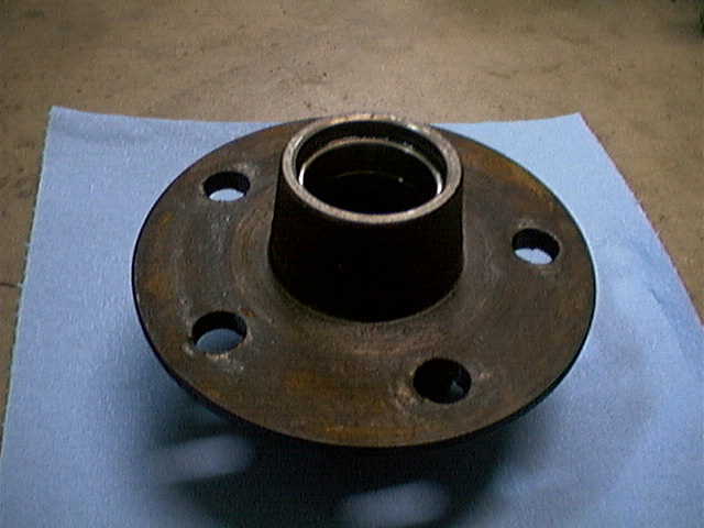 The Studebaker hubs are now modified to accept the Ford rotors with the rotor lug holes drilled out to the next SAE size - 5/8. The original Ford rotor holes being metric these days. Here is the stock hub after separation - before mod :