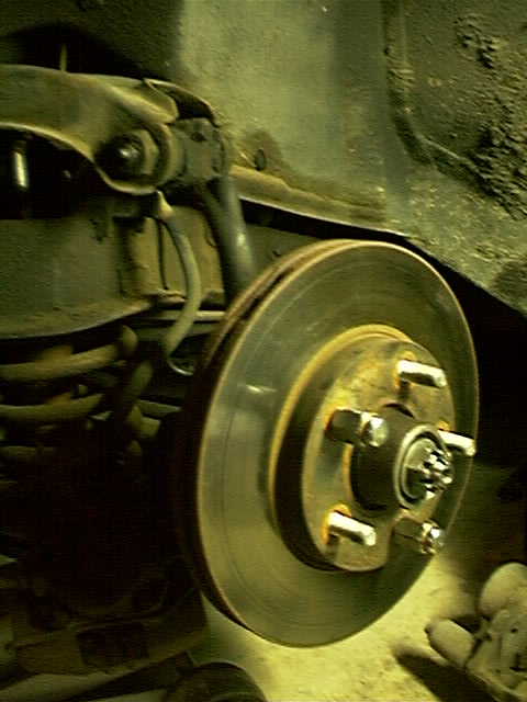 I also found I did something amazingly stupid, after all that cool design work, I used caliper mounting bolts that were too long, and they made a nice groove on the inside of the rotor! Now, its not a huge deal, since the reason I GOT the brakes for free, is that the rotors were worn out and needed replacement. I went to Autozone and picked up two new rotors, and a pad set. The GT rotors are 25 dollars a piece, and the pads were only 15 bucks. :D B)