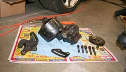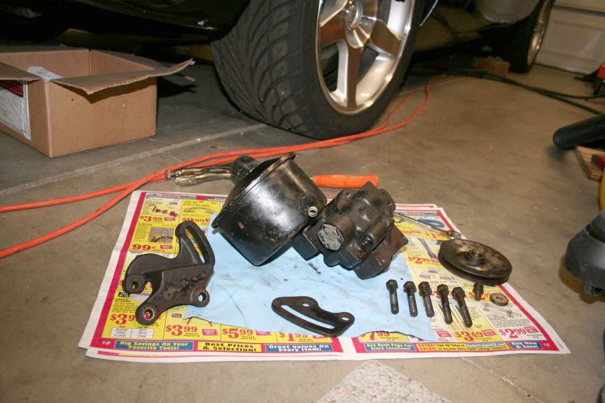 Gather up your bolts, brackets and remove the pulley by holding the