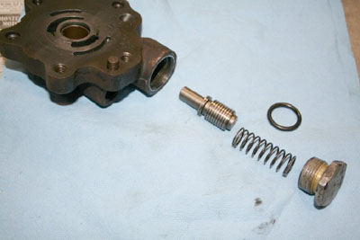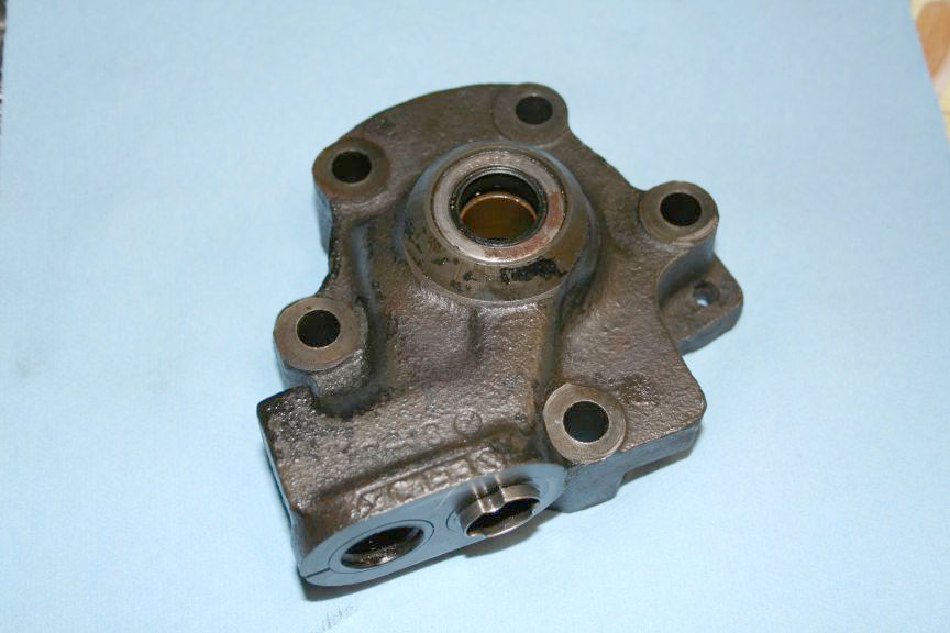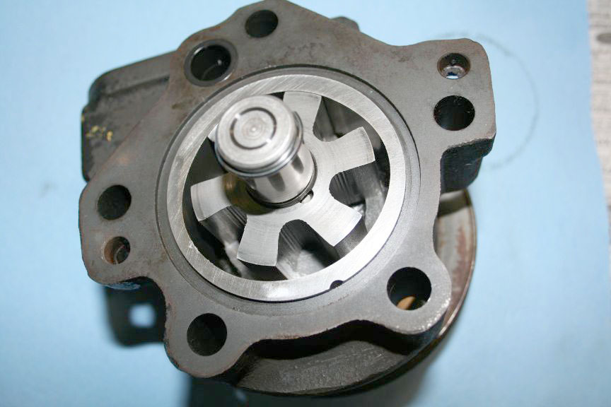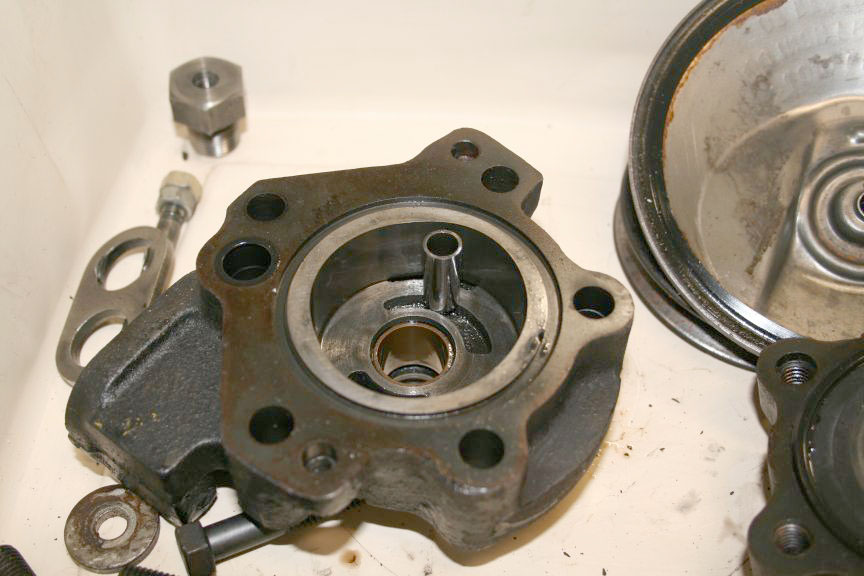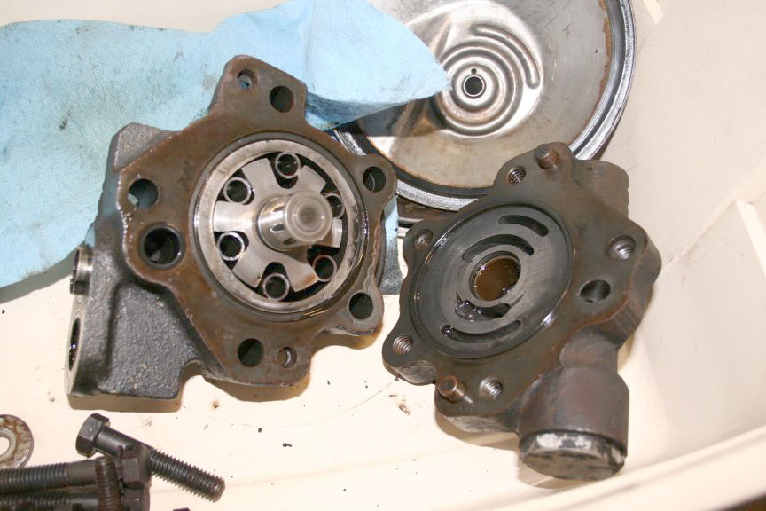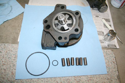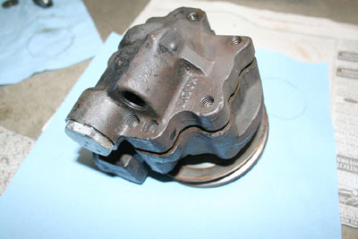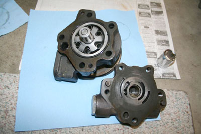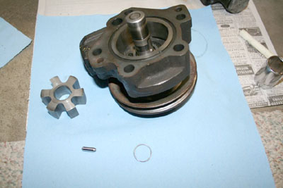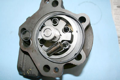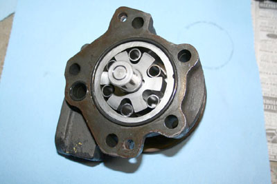 I don't remember any special difficulty getting it apart. Mine looked awful inside. The drive pin, that keys the rotor to the shaft was breaking up; and the rollers had dug into the end plate. I figured I would clean it up and use it until I found another. Small Fords used the same. I made a new drive pin, and sanded the end plate flat. That was about six years ago. It's still working great.