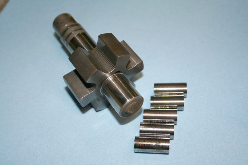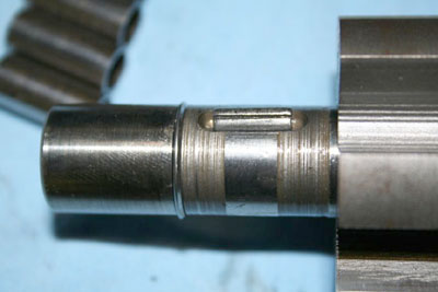 The grooves in the shaft, at either end of the cutout for the pin, don't matter. That's an area that doesn't contact anything when the roller carrier is slid over the drive pin. The grooves are the original finish.
