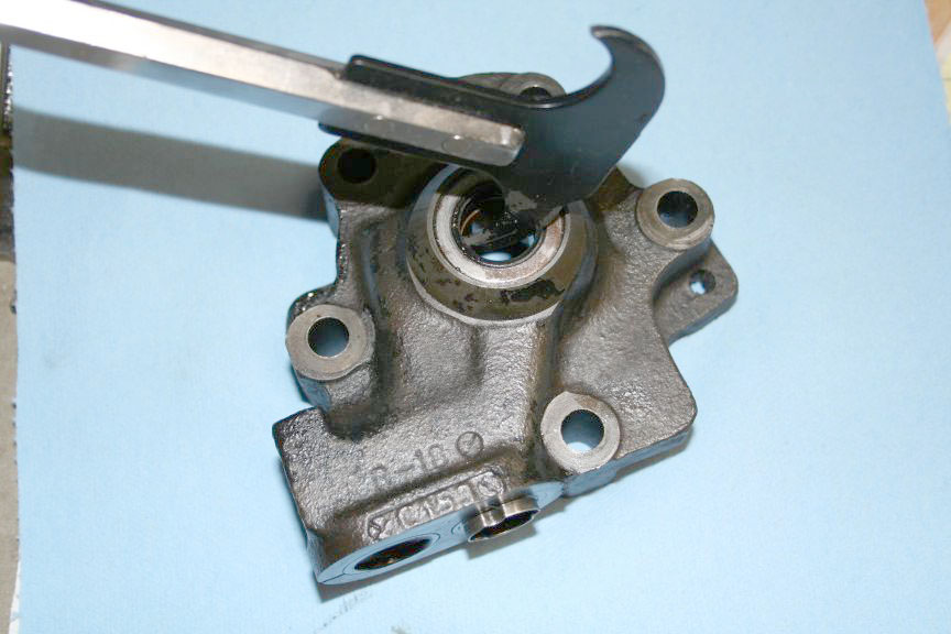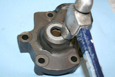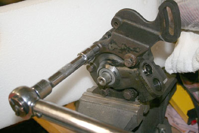 up against the pump case. I hit the wrench with a rubber mallet and