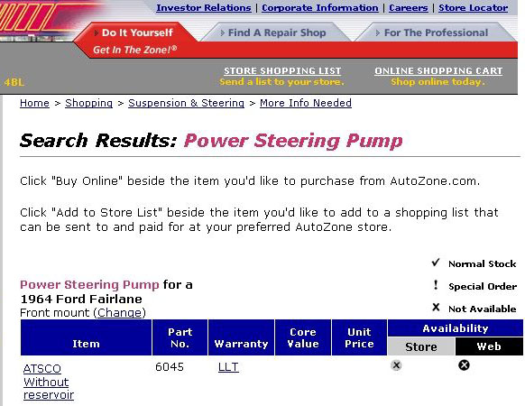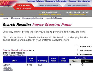 So I went back to the Autozone website, but no listing for Mustang. So