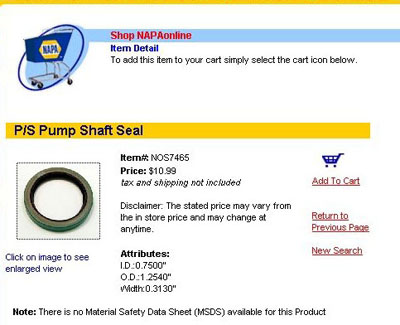 The shaft seal number is NOS7465 from NAPA.