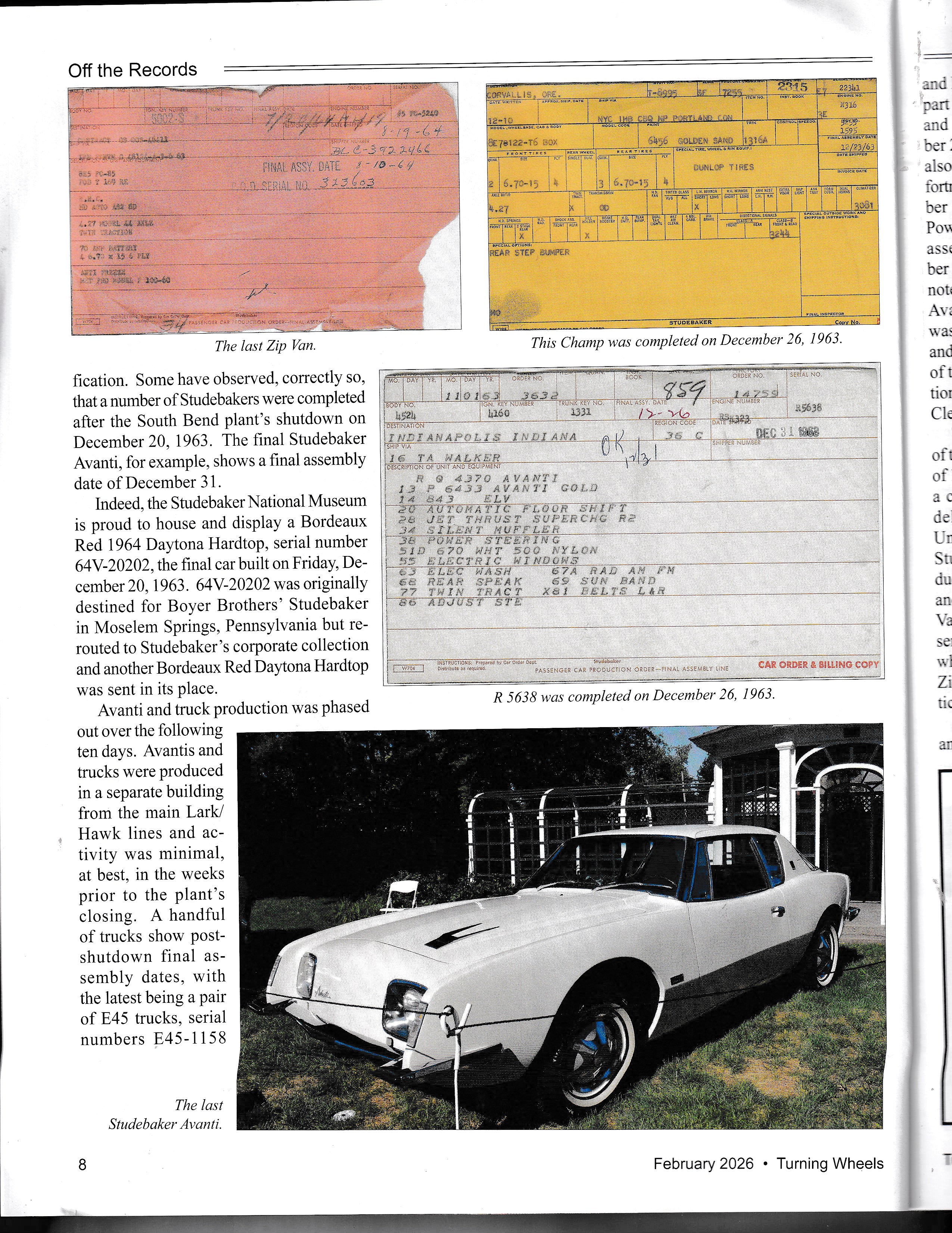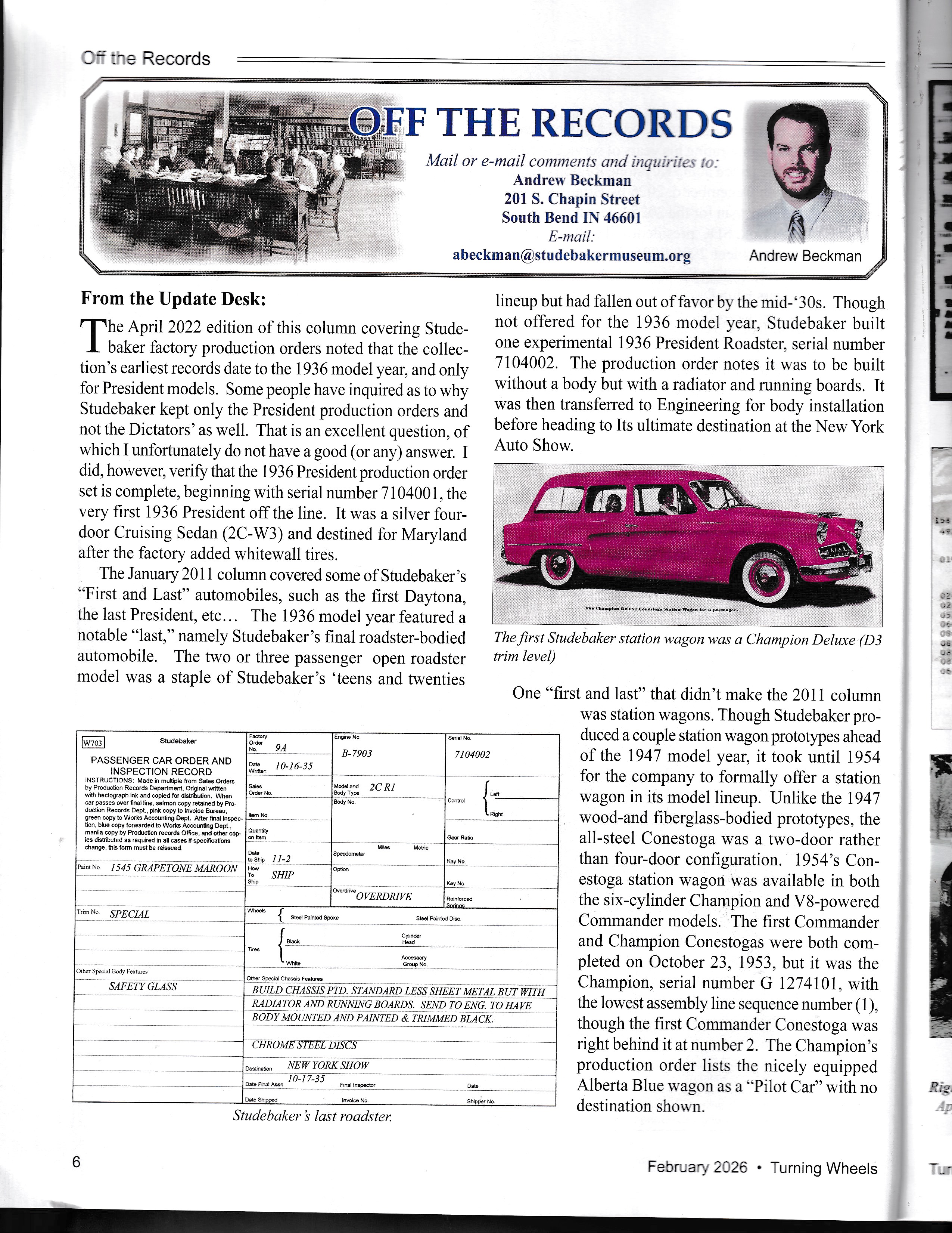 Bob's Studebaker Resource Website Andy Beckman Turning Wheels, Feb 2026