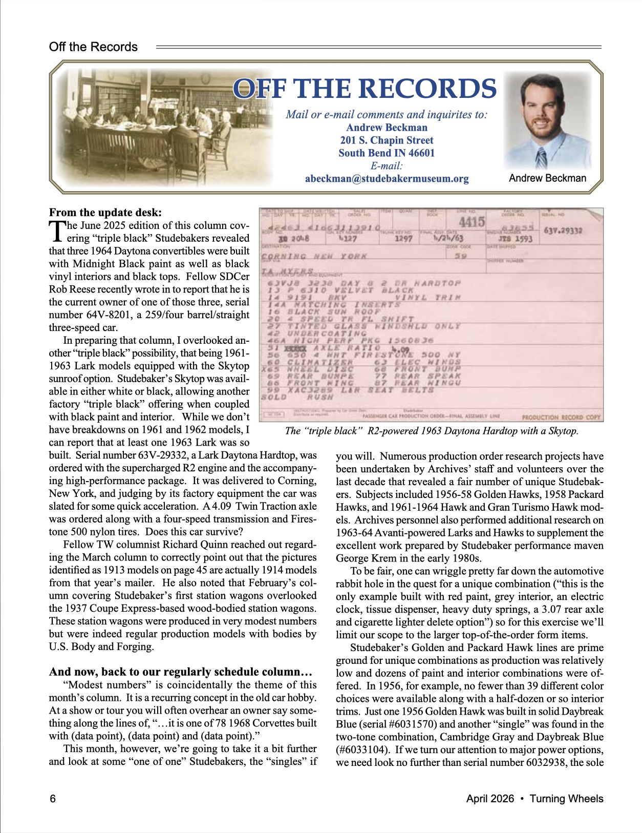 Bob's Studebaker Resource Website Andy Beckman Turning Wheels, Apr 2026