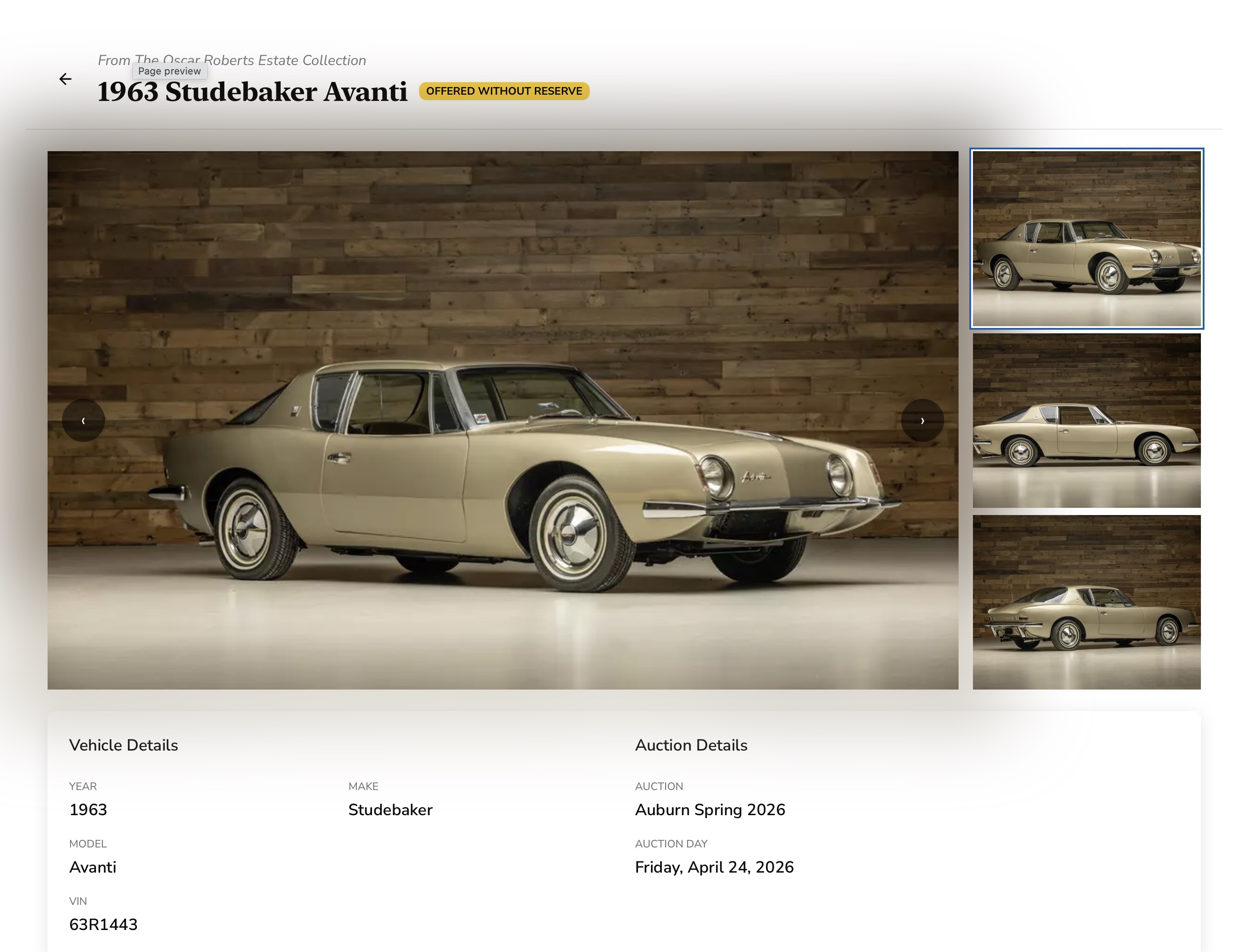 1963 Avanti R-1443 - Apr 2026