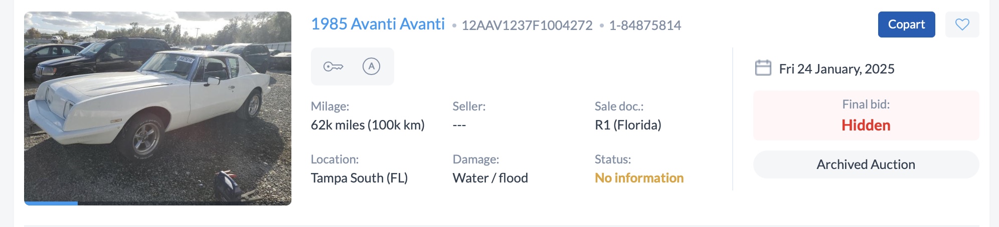 1985 Avanti 12AAV.....4272 - Jan 2025
