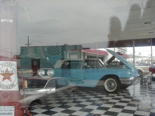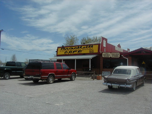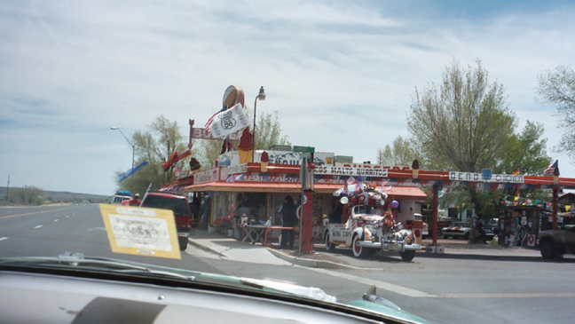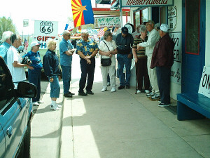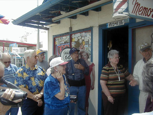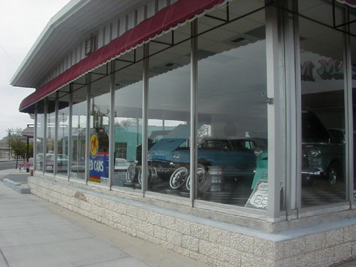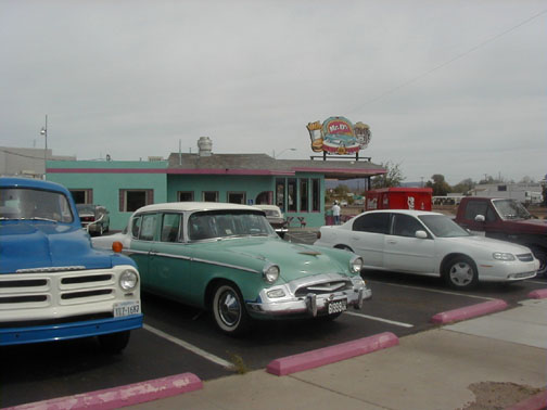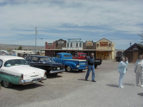 Arrived in Needles, late afternoon. First thing to hit you in the face is ...gasoline..$2.47 + up. Some minor maintenance on the cars. Bob & Paul go to the local NAPA for supplies. The weather is cool and windy. Dinner at a locally recommended restaurant. The cars were a big hit in the parking lot |