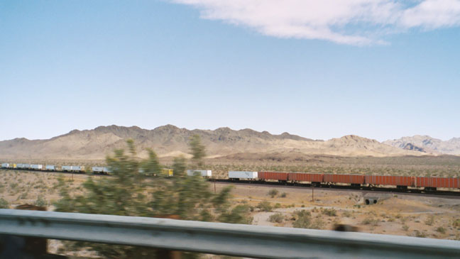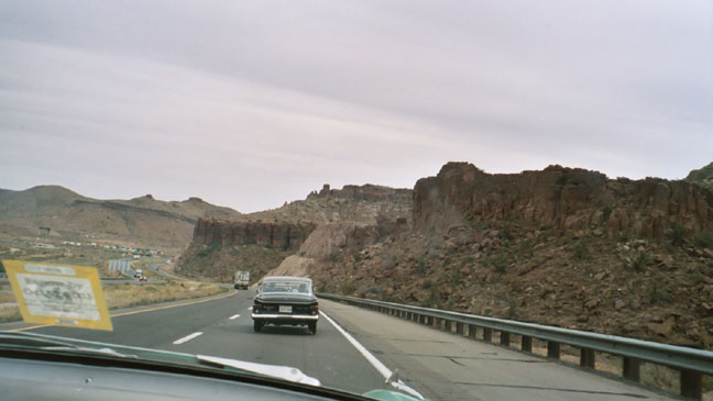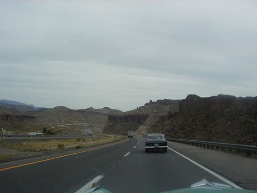 Leave Williams, Arizona for Needles, California. Early AM, Dave arose to deal with the overheating situation on his car. The diagnosis was that the thermostat was stuck shut and had to be removed. Doing this only took a short amount of time and Dave was ready at the 8AM call. On the other hand, another glitch came up. Paul started his car and it stalled, flooding the engine and fouling the plugs. Paul went over to the local NAPA to get new ones and Bob and Frank removed and cleaned the old ones. Paul returned with only 3, but they were installed with some old ones and everything worked We departed around 10AM and headed toward the 'Left coast" Arizona is a 'greener' type desert than New Mexico
