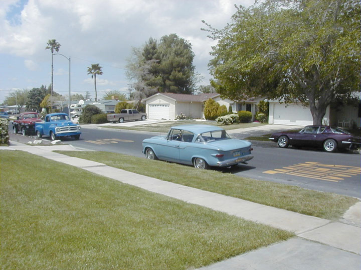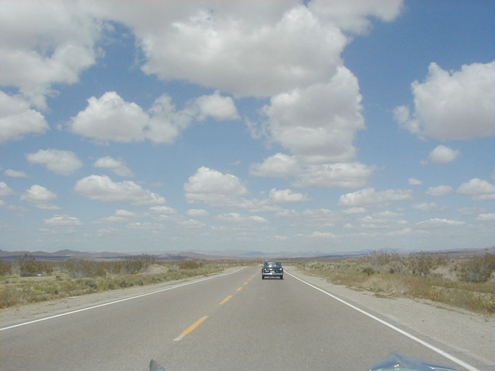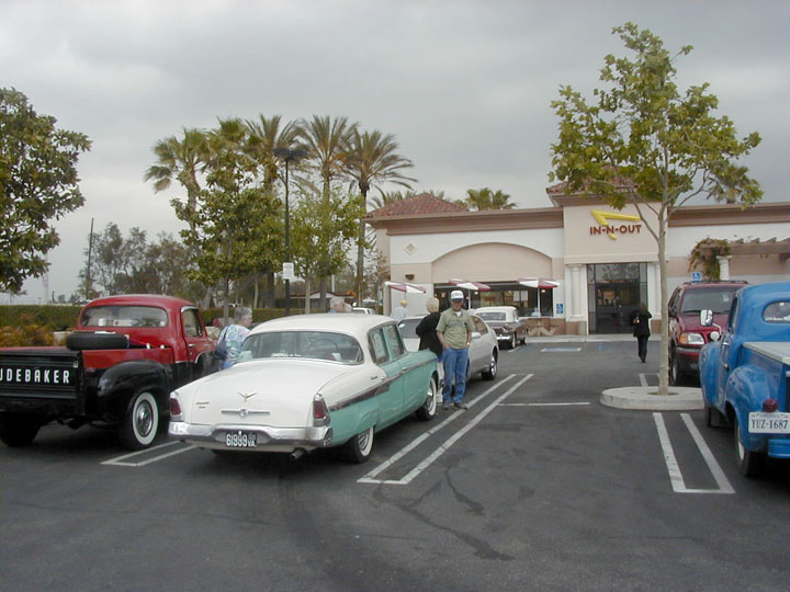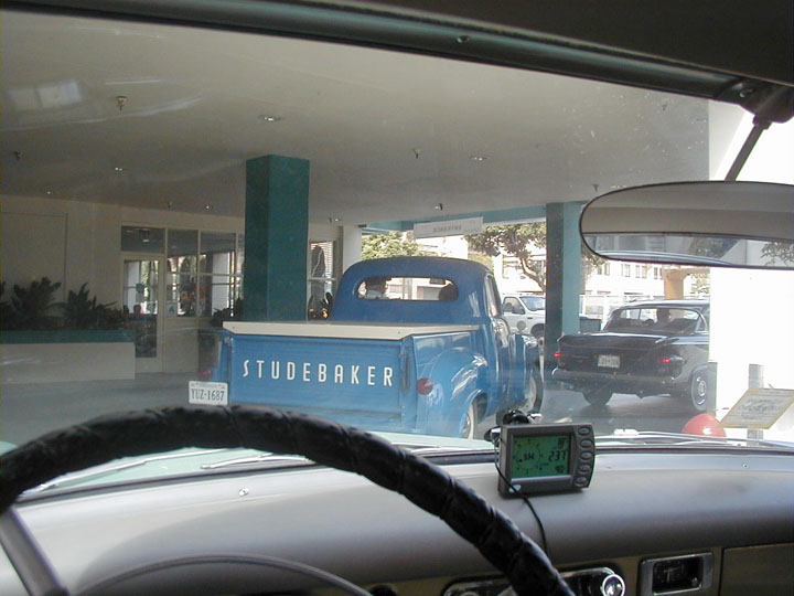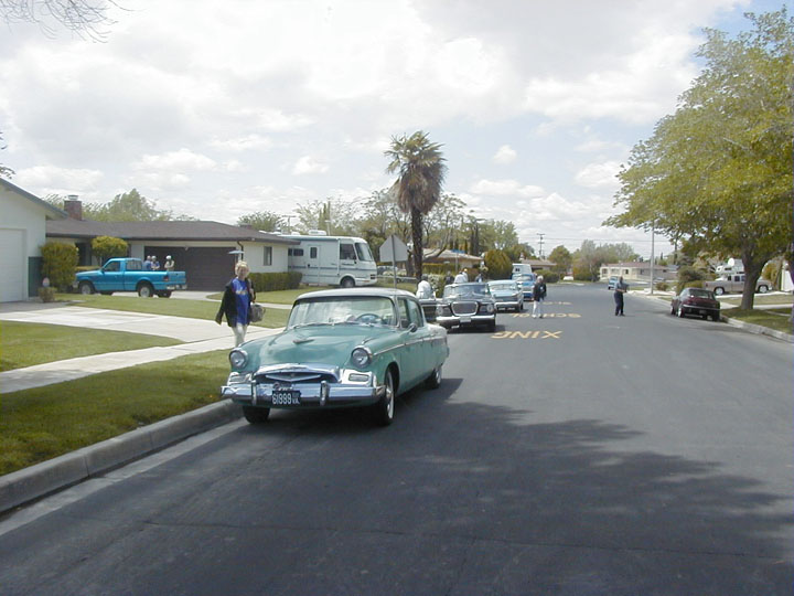 Tonight, we stay in Barstow, CA and arrived at the motel around 3PM. Coming into town, I spotted a 52 Commander in a front yard. Barstow looked to be a small town with the usual compliment of strip malls and stores. Larry Merhaut had gone ahead and checked in before the rest of us. When we caught up with him, he mentioned that the fellow in the room next door asked if he'd like to use his truck to block anyone from "stealing his car". We got to wondering about this later in the afternoon and were strategizing about how we could line up the cars for protection. Dave and Nadine hosted a Hospitality Suite for the group Some of us are learning and gassed up that afternoon, giving more wiggle room in the morning. We did some trinket shopping at a local market.