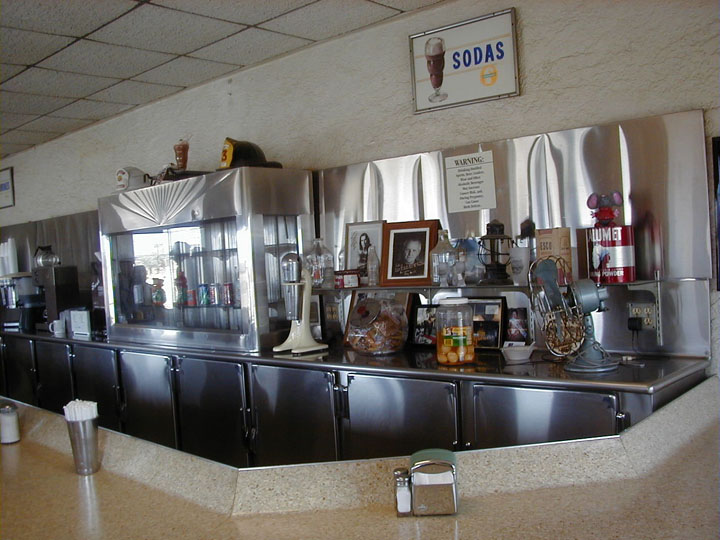 We traveled Old Route 66 for a good while. On approaching the point where we previously met Studebob on the westbound trip, we took a turn off the "National Trails" pavement, onto what was a terribly maintained section of road. It pounded the cars so much that we wouldn't drive over 10-15 mph. Finally after a few miles, we got back on the Interstate. |
