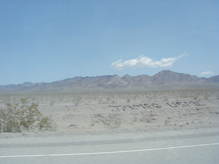 Along the road near Hacksberry, the berm would be decorated for miles with the names of visitors, formed in small stones |