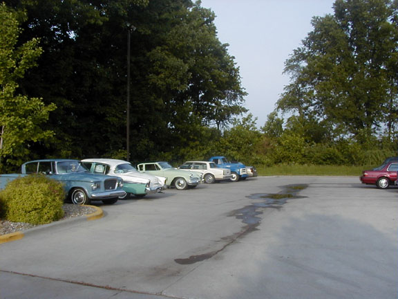 Leaving the Overlook restaurant, there was a problem with Pauls Avanti. It took a couple hours to sort out, but we got back on the road as quick as we could. Next stop was Lexington, KY and a Chocolate Shop in a strip mall of surburban Lexington. On the way through the maze of rush hour traffic, we were stopped at a light and noticed another car club parked in a Hotel lot. A few of the owners came over and beckoned us to stop and chat, but time was at a premium and we pressed onward. Arrived at the Holiday Inn around 5:30 |