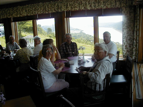 At 6:00PM, Paul & Karen Johnson hosted a hospitality room for the group and later, we all went to the Hotel restaurant for dinner The serenity of the hotel lasted until around midnight, when a Little League Softball team arrived...... In the morning, we were greeted with some steady rain... |